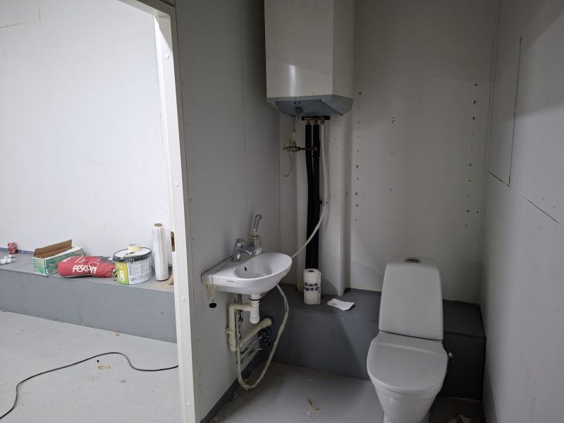 Tilassa pariovi, wc, ilmalämpöpumppu, voimavirta.