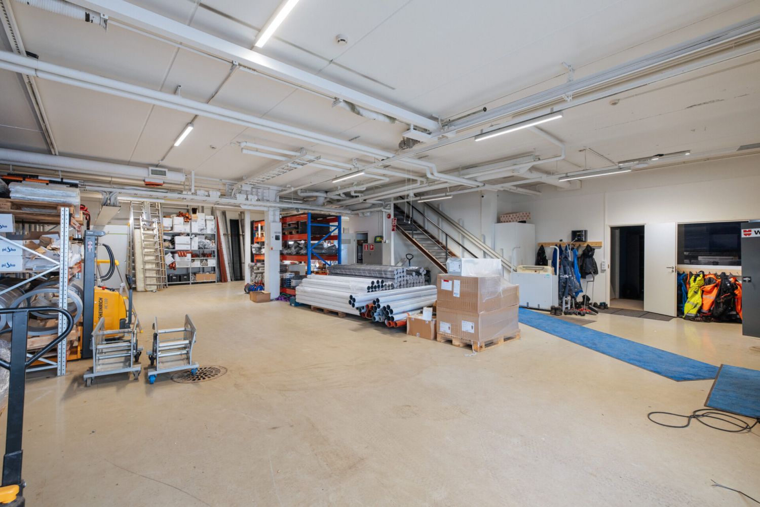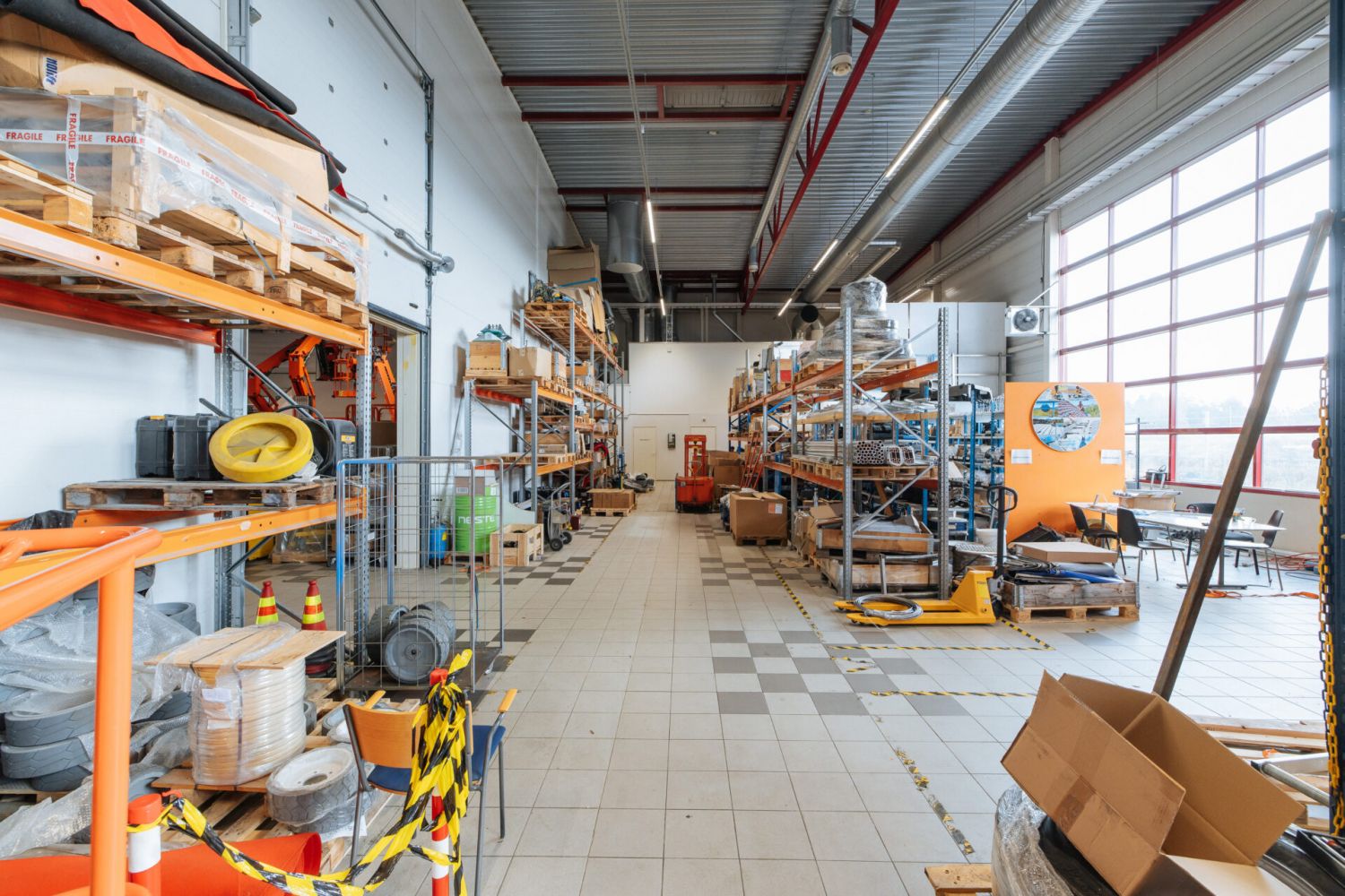 Halliosassa on maantason suuret nosto-ovet (noin 4 m x 4,3 m), jotka mahdollistavat sujuvan tavaraliikenteen. Rakennuksen uudemman puolen lattiakantavuus on vähintään 500 kg/m², ja vanhan hallin puolella noin 1000 kg/m². Mikäli käytetään erittäin raskaita hyllyratkaisuja, rakennesuunnittelija suosittelee kuormaa tasaavaa levytystä tai kerrosta lattian suojaksi.