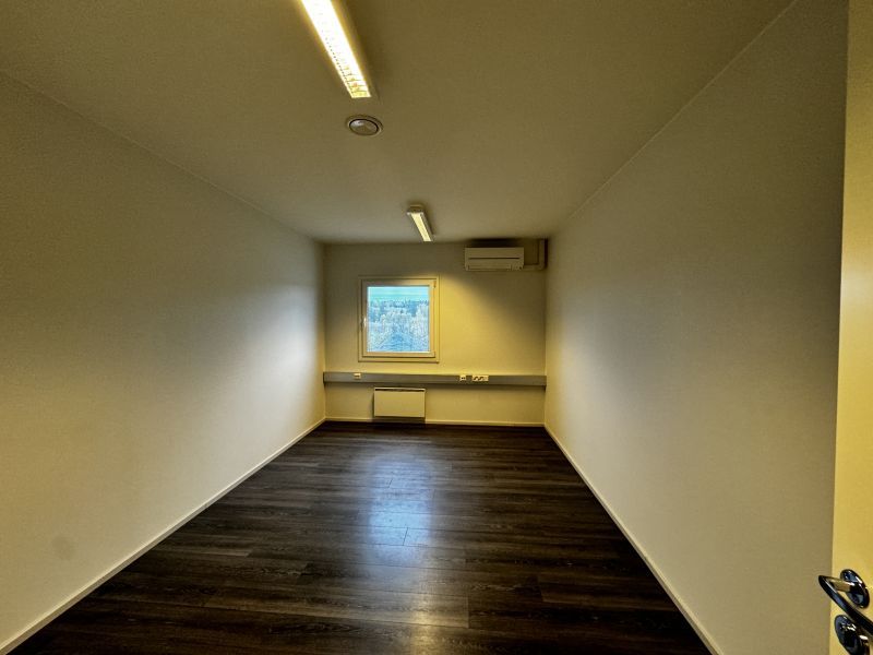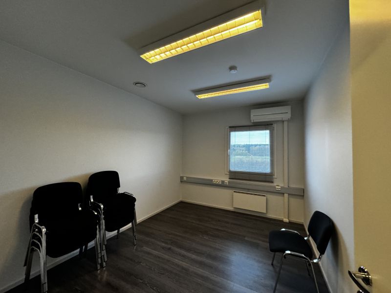 Viereisen rakennuksen toimistohuoneissa ilmalämpöpumput, valokuitu nettiyhteys ja yhteinen täydellinen keittiö-taukohuone ja wc:t. Pihalla asfaltoitu parkkipaikka.