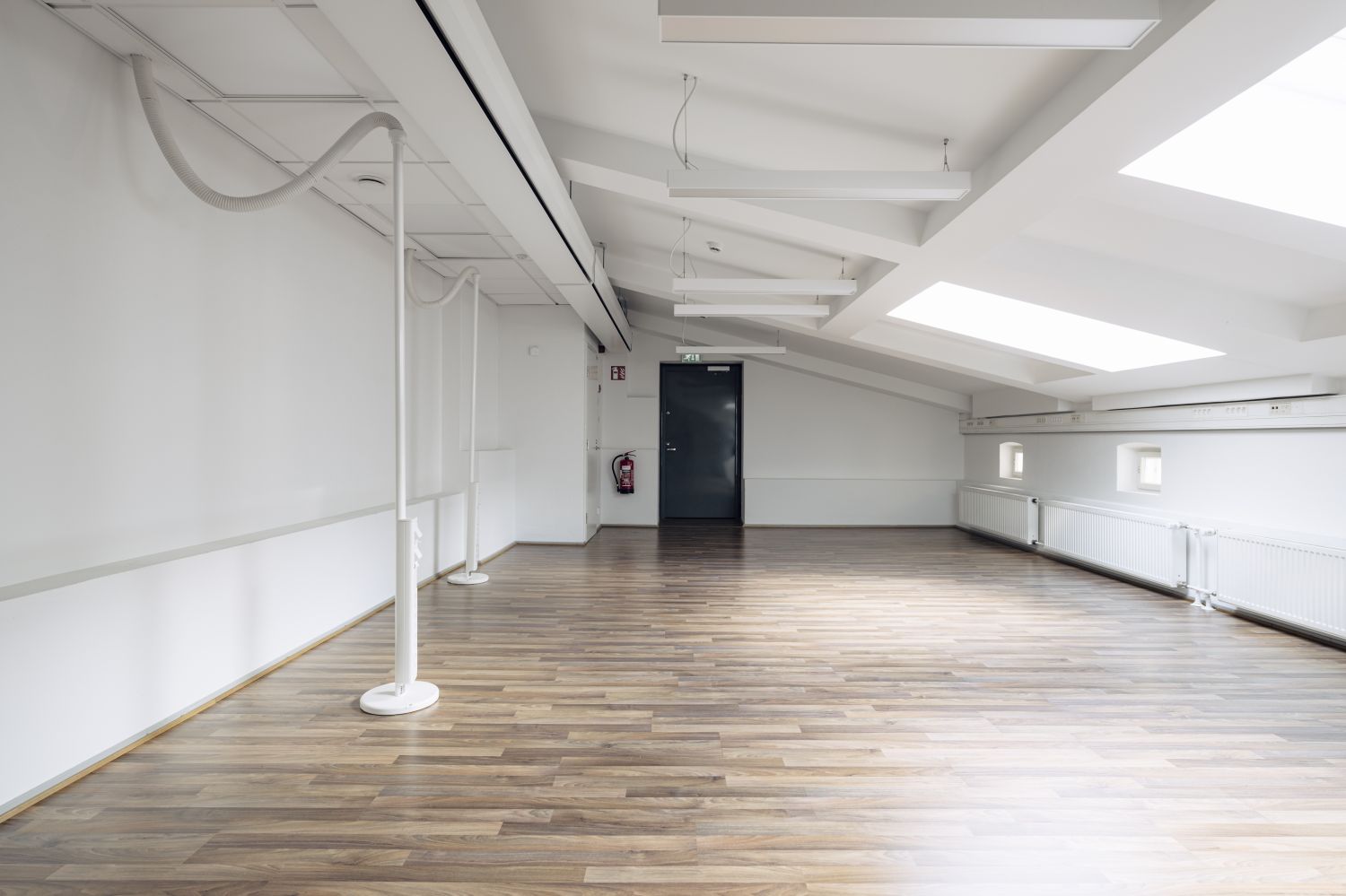Siisti ja kompakti toimistotila valoa tuovilla kattoikkunoilla.