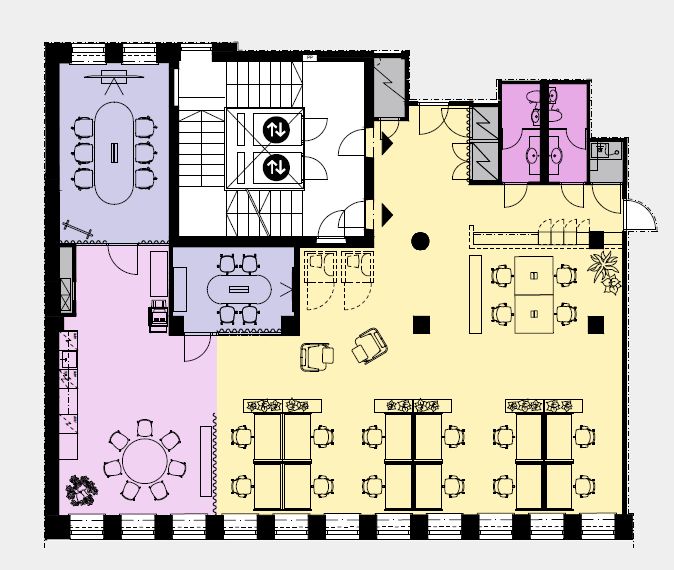 Valoisa neljännen kerroksen toimistotila, jossa on avotyöalue sekä kaksi erillistä neuvotteluhuonetta. Tilaan rakennetaan uusi keittiö, ja ikkunoista avautuvat näkymät Annankadulle. Ohessa havainnollistavia kuvia kiinteistöstä.