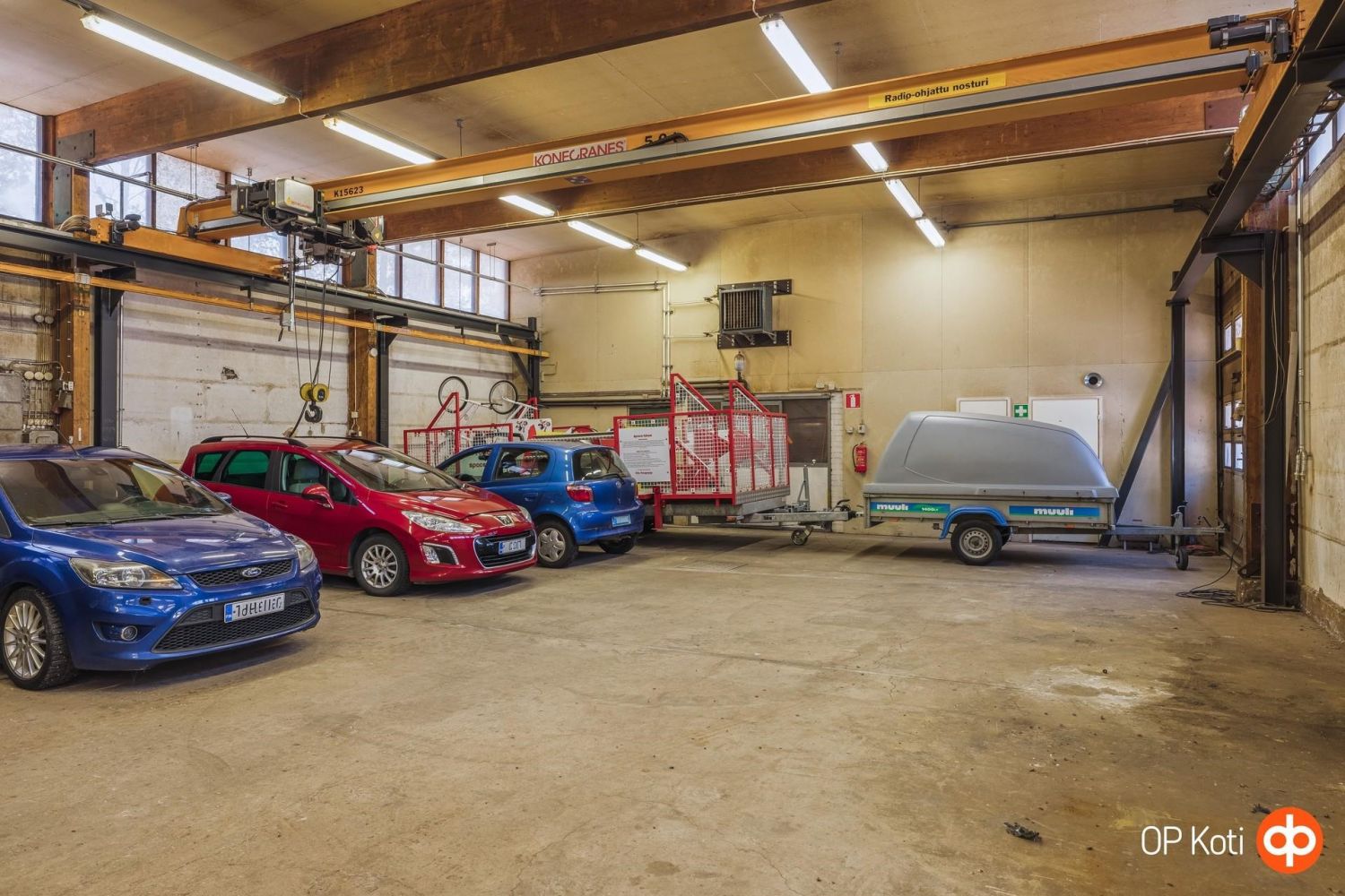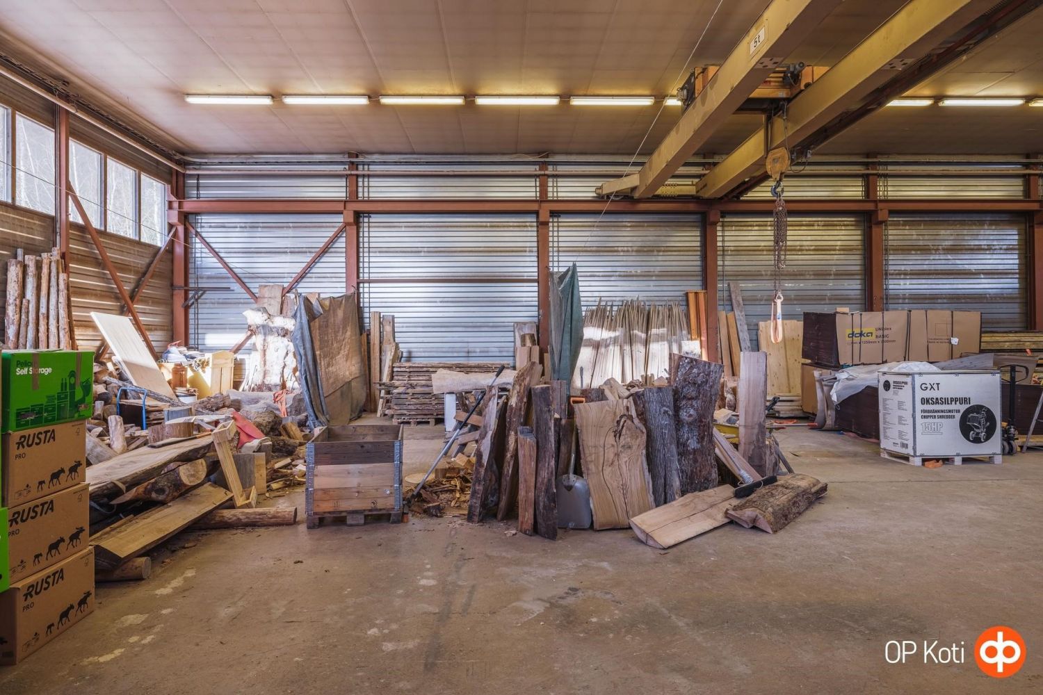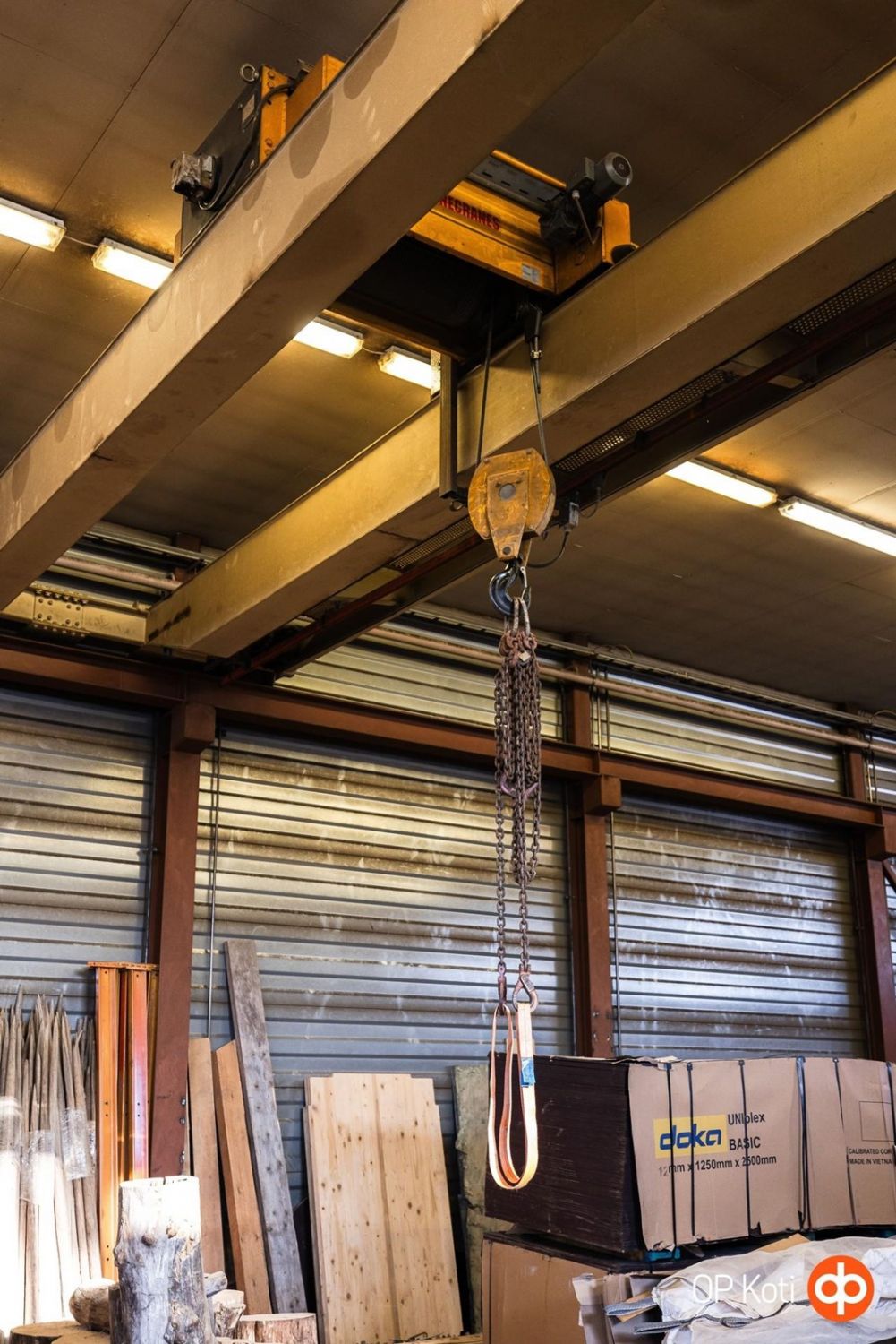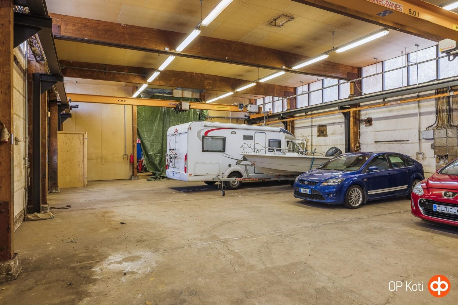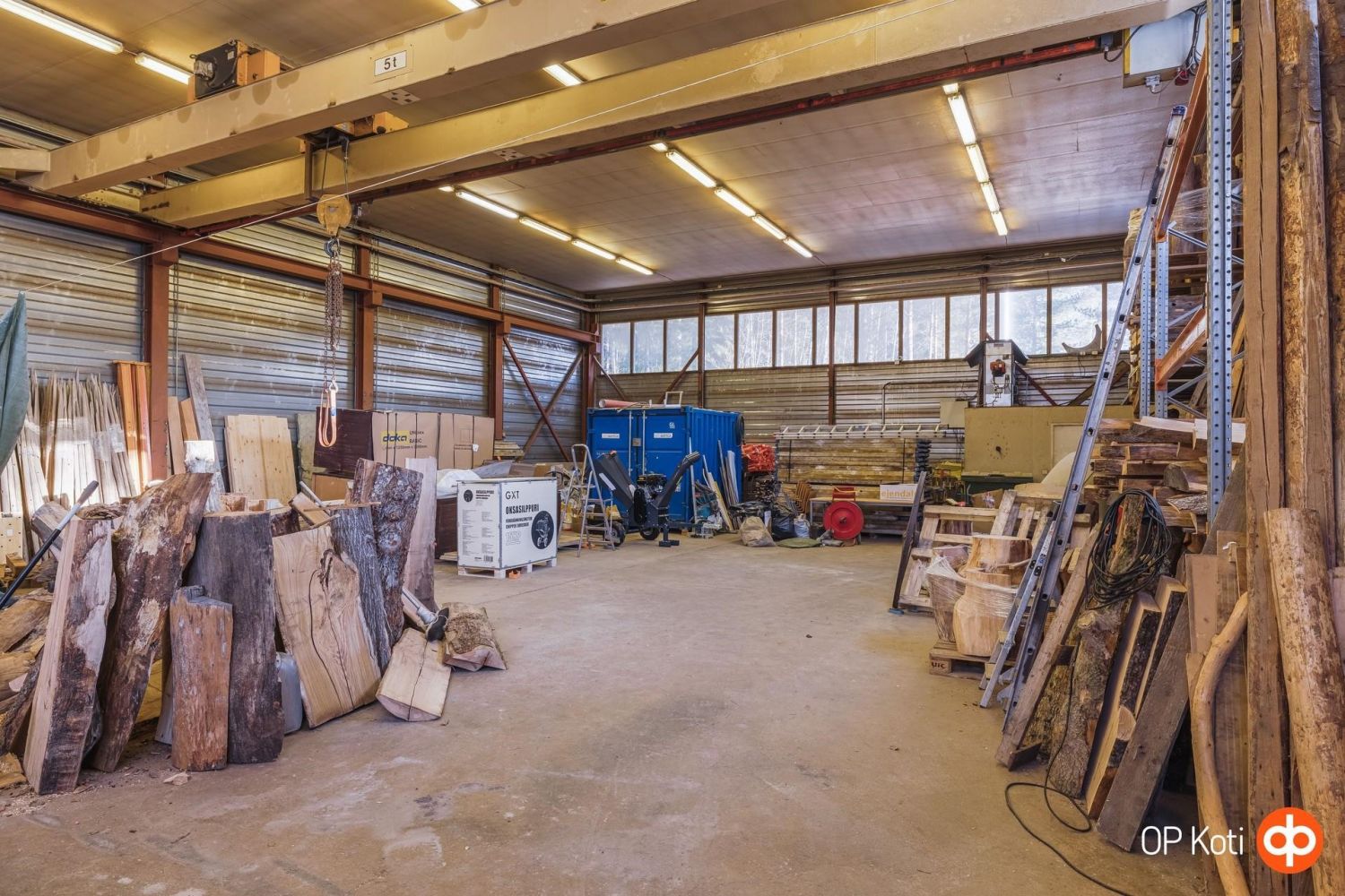 Hallin vapaakorkeus on noin 5 metriä, ja käytössä on kaksi 5 tonnin siltanosturia.