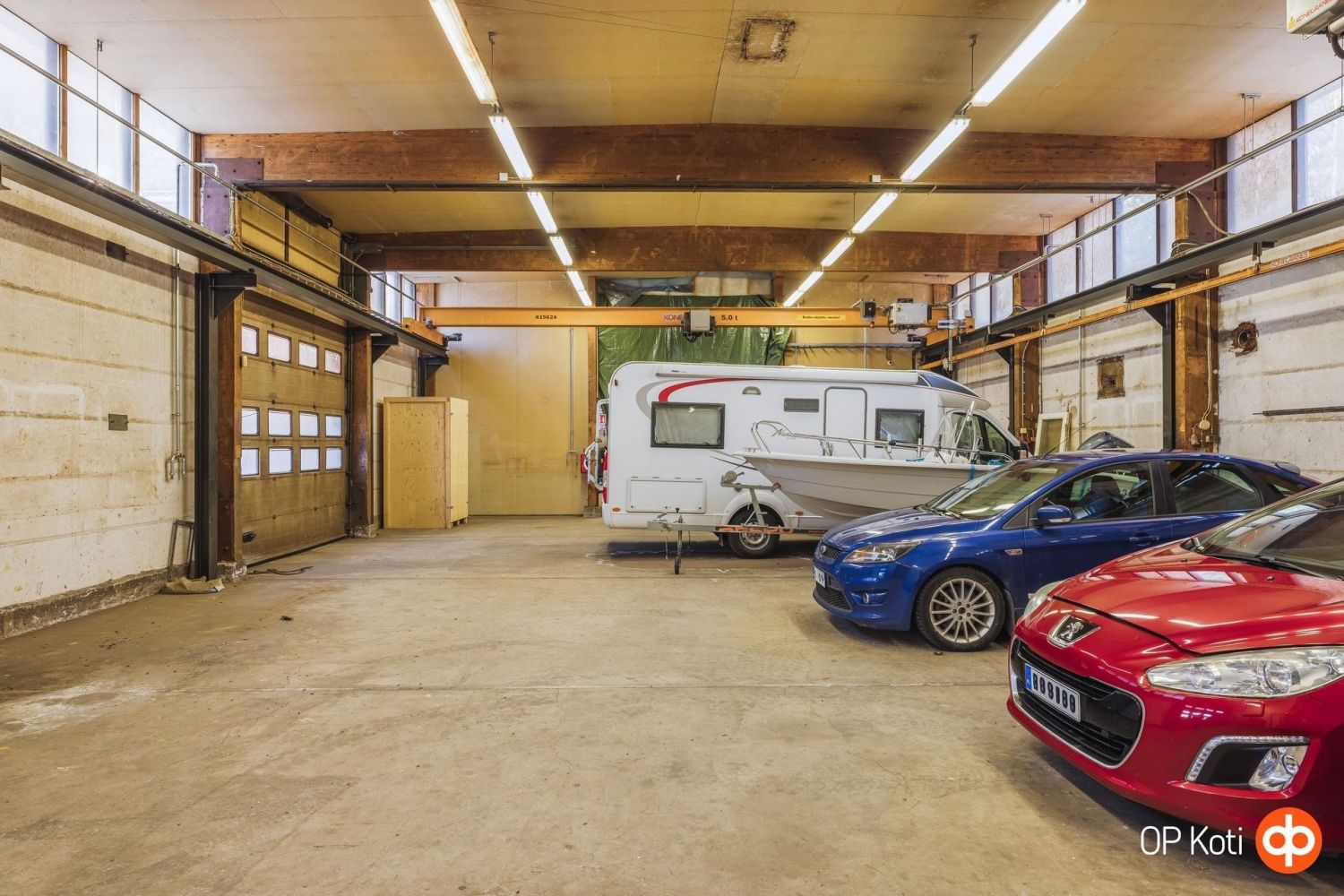 Tilaan johtaa kaksi nosto-ovea sekä laajennusosan taitto-ovi.
