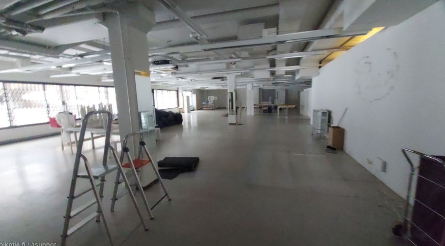 Hyvällä sijainnilla oleva avoin ja selkeä 487m2 liiketila. Tila muunneltavissa erilaisiin käyttötarkoituksiin.