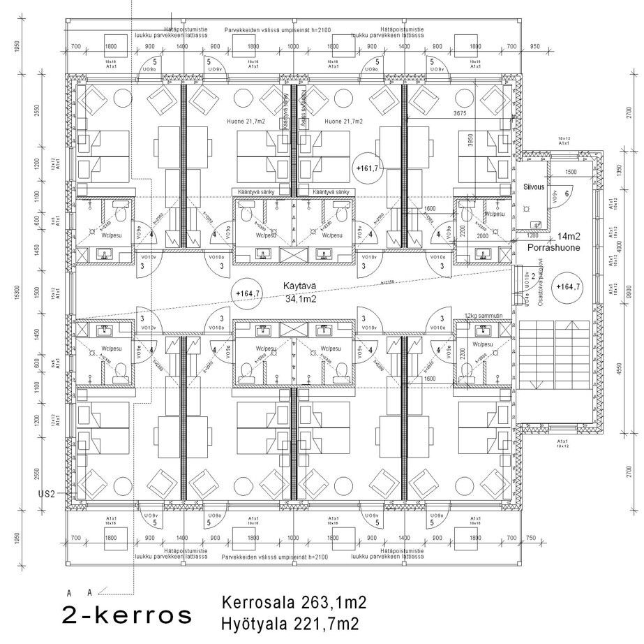 Hotellissa on 16 hyvin varusteltua huonetta (22 m²), joissa on oma kylpyhuone, parveke ja majoitus kolmelle. Alakerrassa sijaitsevat tilavat kokous- ja koulutustilat, sauna, pesutupa ja viihtyisä oleskelutila, ylimmässä kerroksessa klubitila ja toimistohuone.