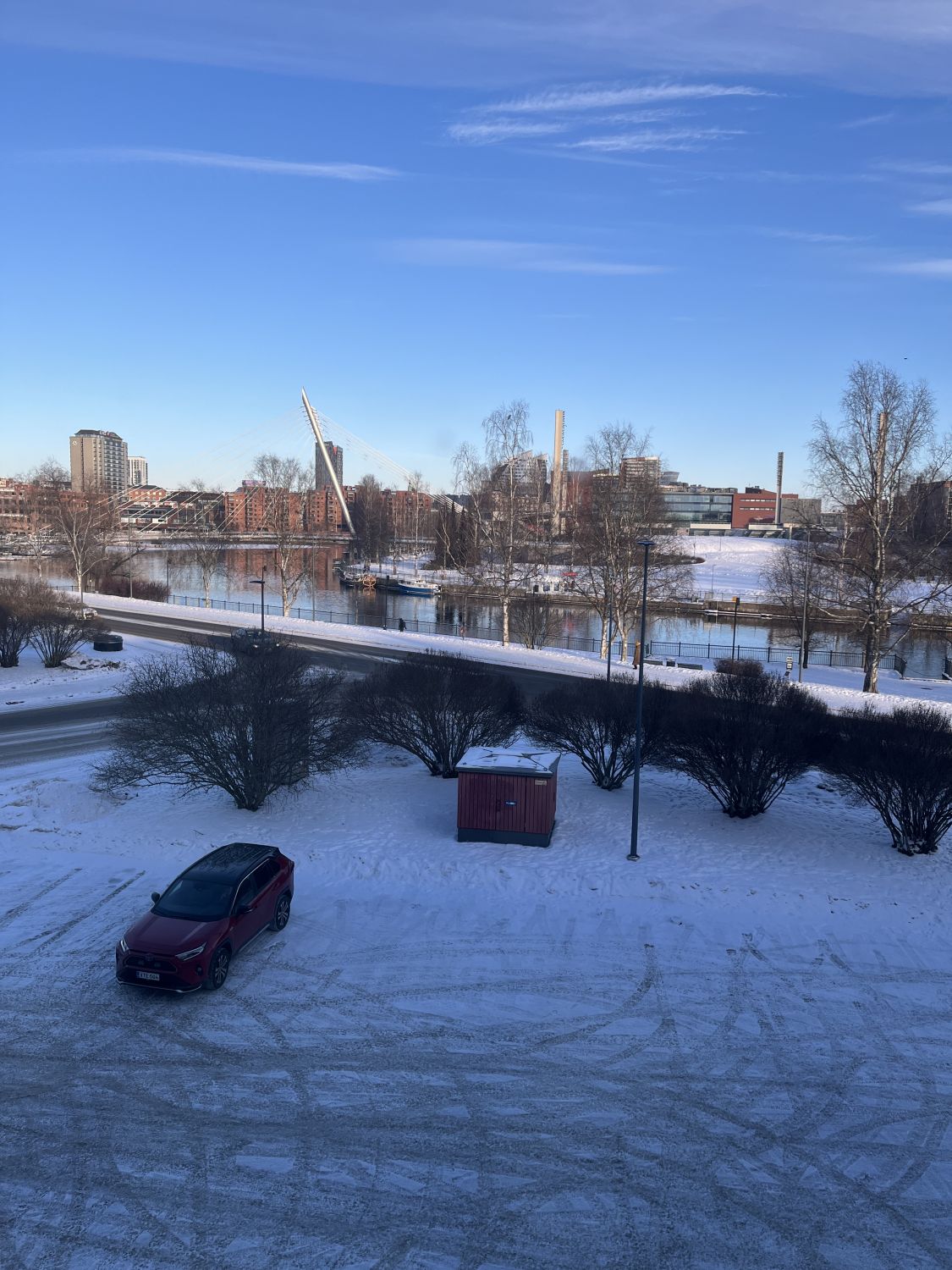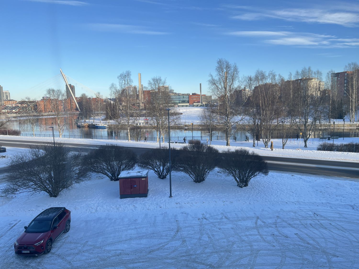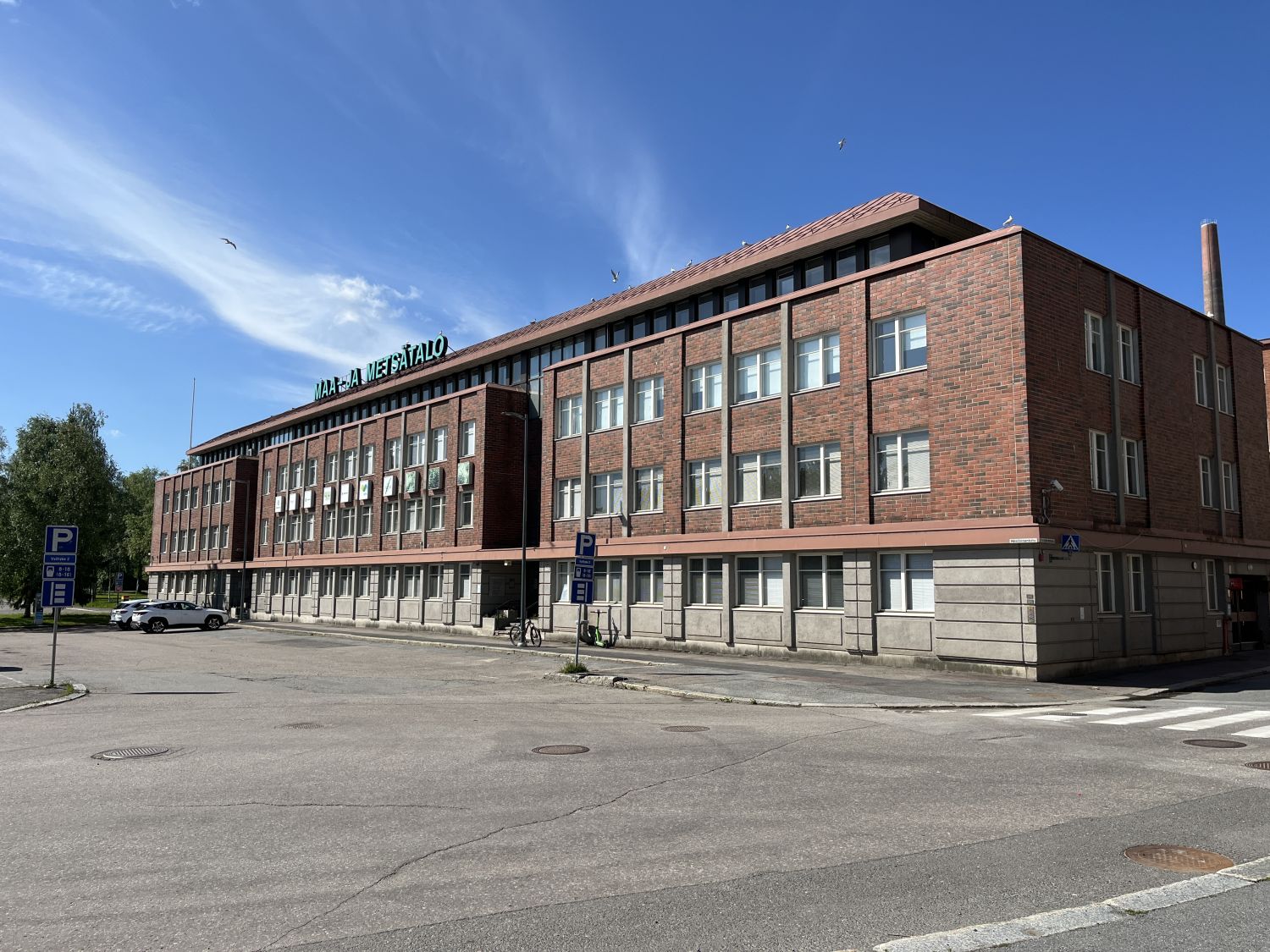Rakennuksen edessä on iso parkkialue, jossa pysäköinti on maksullista. Kiinteistössä on myös oma parkkihalli sekä ulkopaikkoja sisäpihalla.
