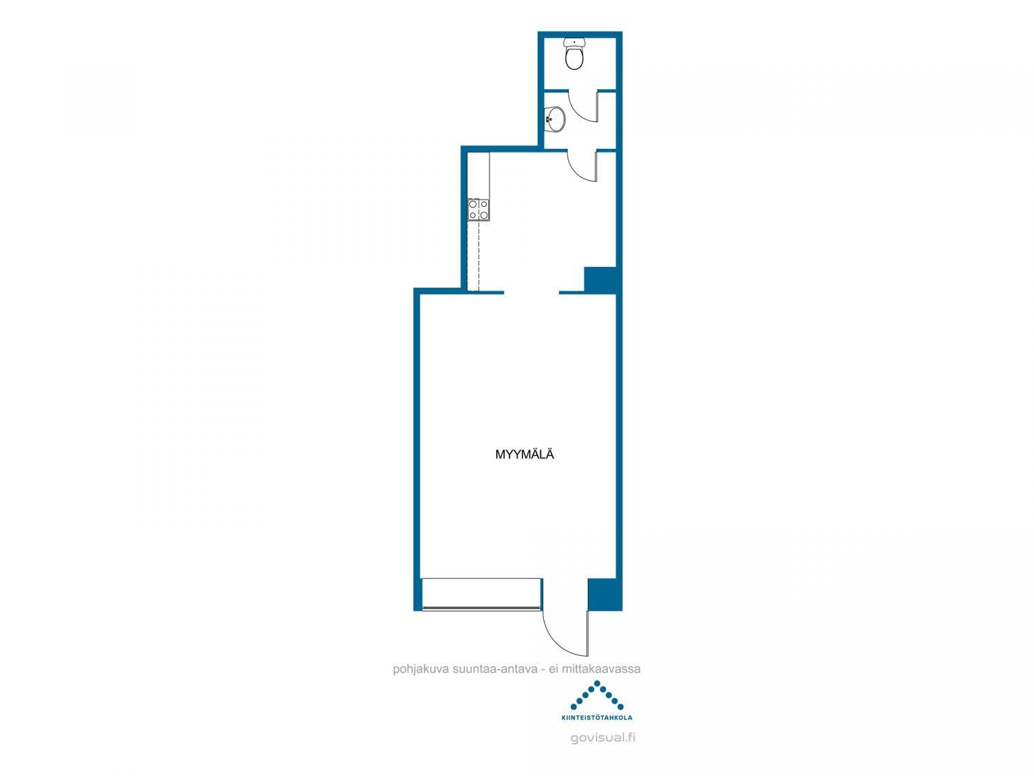 Tilassa on varsinainen myymälä-/työtila, erillinen takahuone sekä wc. Yleisilme on siisti ja neutraali monenlaiseen käyttöön. Huomioithan, että tilassa ei ole keittiötä, joten se ei sovellu ravintola- tai kahvilatoimintaan.