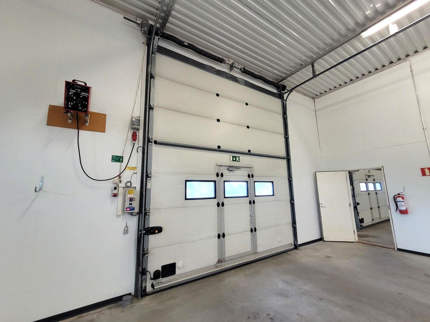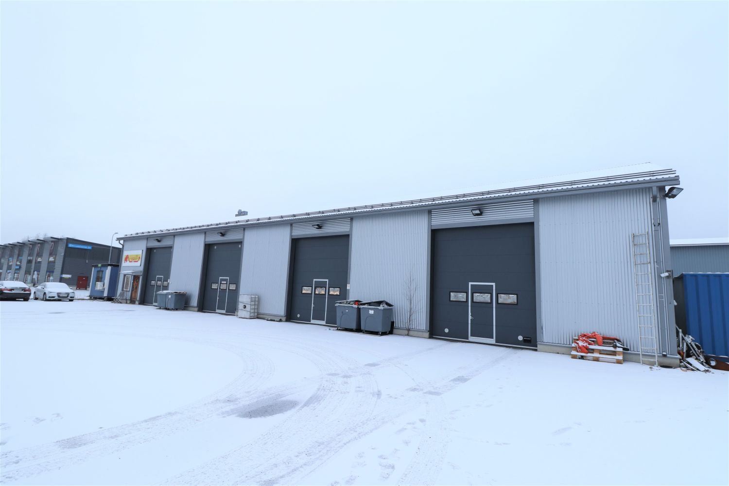 Tila jakautuu korkeaan hallitilaan, jonka yhteydessä on toimisto-/sosiaalitilat. Halliin on neljä isoa, sähkötoimista nosto-ovea sekä käyntiovet. Lattia on betonipinnalla, ja lattiakaivoja useita. Ympäri aidatulla pihalla on reilusti tilaa kalustolle ja tavaran säilytykseen. Piha-alue on pääosin asfaltoitu ja tontille on avattava portti.