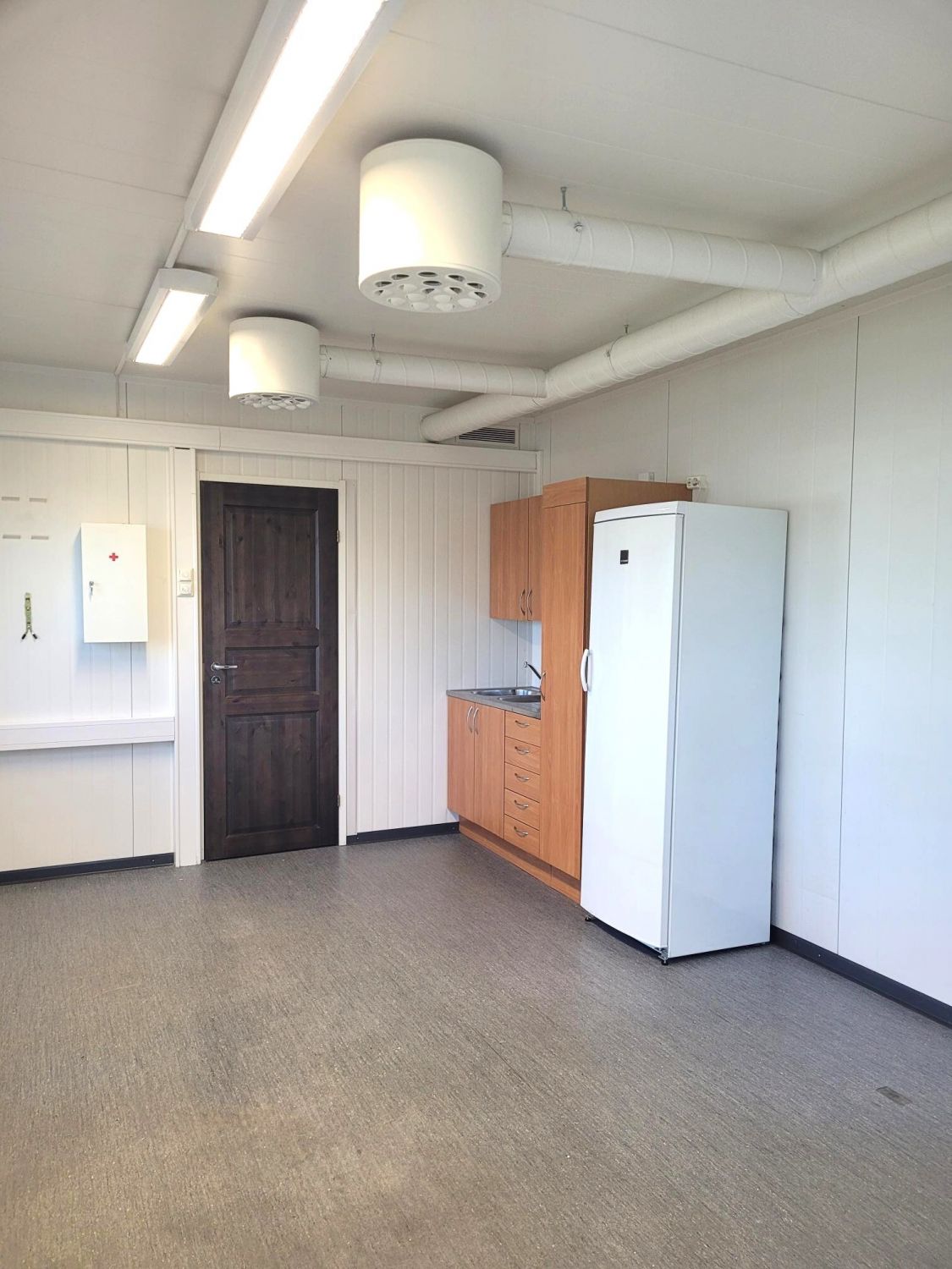 Tilan lämmitys on toteutettu maalämmöllä (lämpöpuhaltimet), lisäksi on 2kpl ilmalämpöpumppuja. Toimisto-osassa on sähkölämmitys.