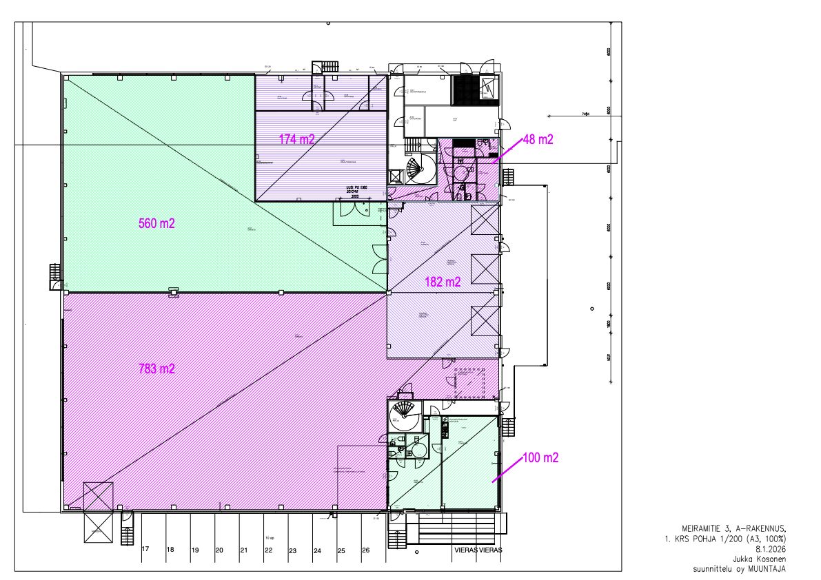 1.7.2026 vapautuva toimiva kokonaisuus A-talon ensimmäisestä kerroksesta.
