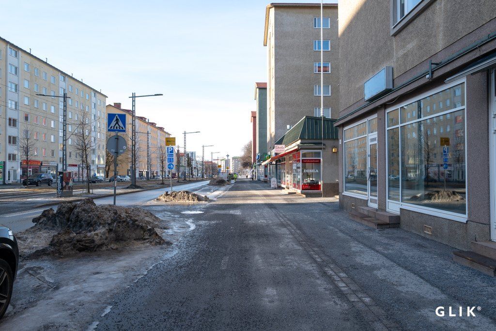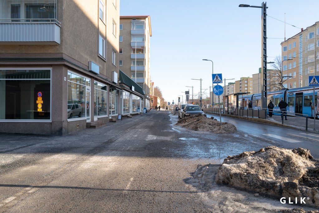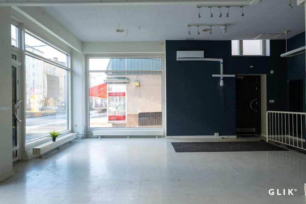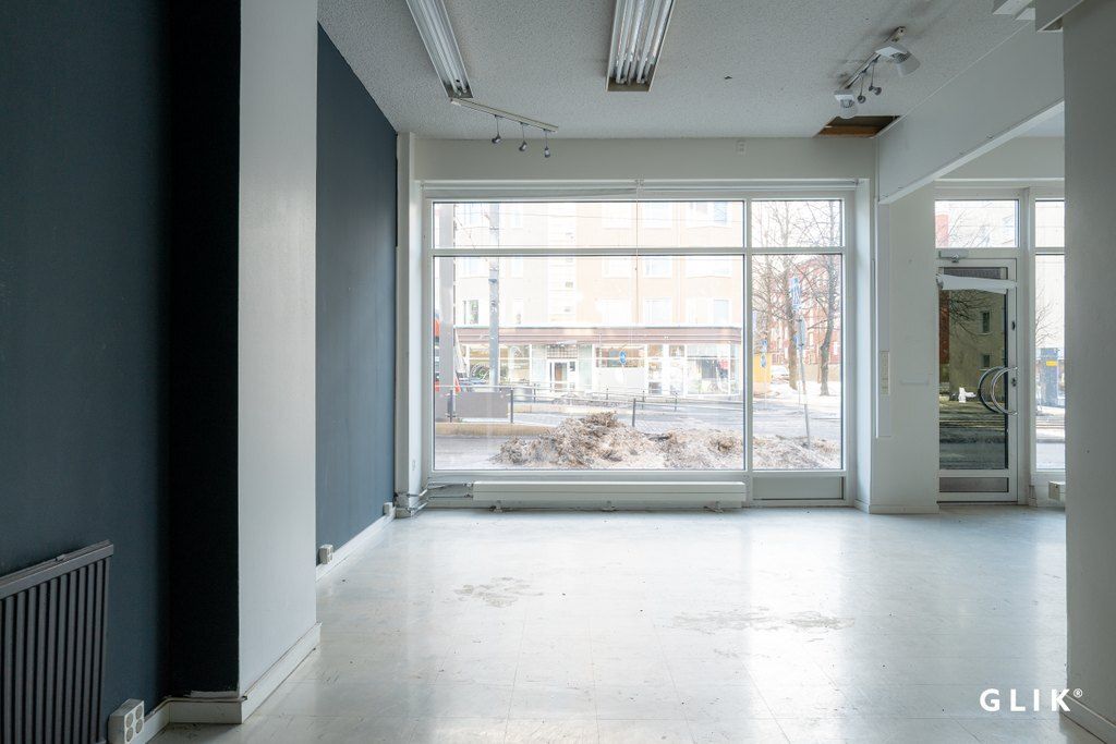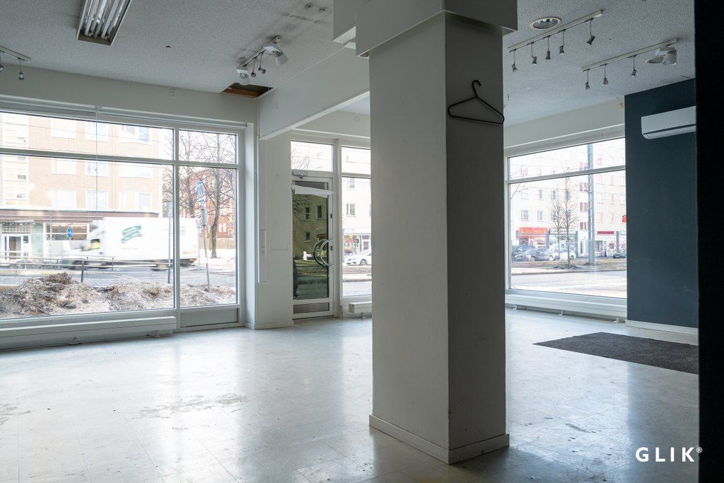 Kalevasta, vilkkaan Sammonkadun varrella, valoisa kulmahuoneisto, suurin näyteikkunoin. Pinta-alaa on kaikkiaan noin 162m2.