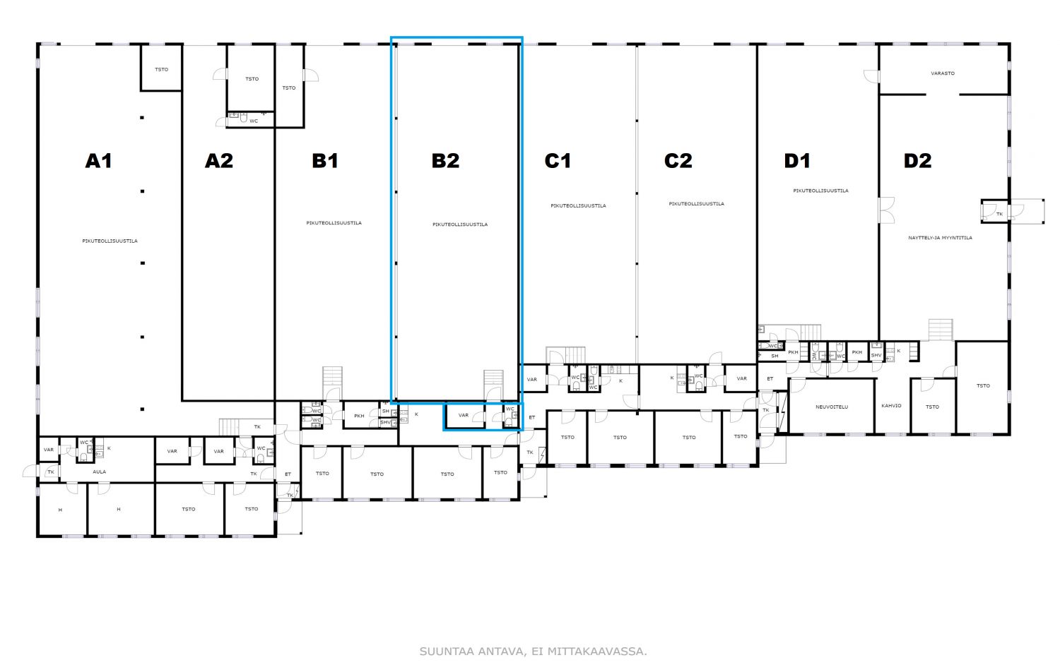 Halli-B2. Pien tsto + wc. Hyvät logistiset yhteydet kaikkiin suuntiin! Tilat sijaitsevat vain 4 km Lahden keskustasta, aivan Eteläisen kehätien välittömässä läheisyydessä. Halli lämmitys kWh-mittarin mukaisesti (+ilmalämpöpumppu.), valosähkö kuuluu vuokraan.