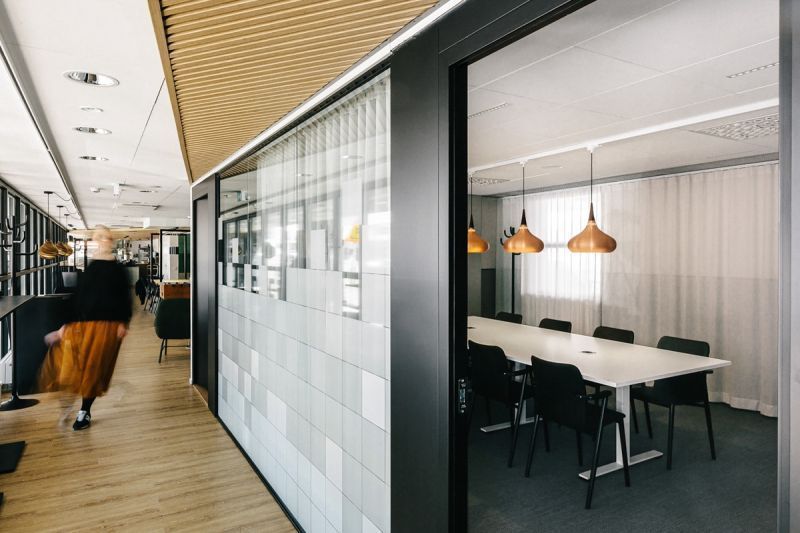 Toisen kerroksen moderni ja tehokas toimistotila.