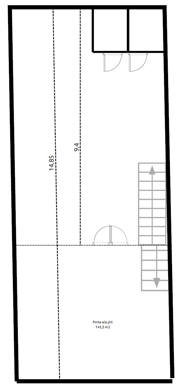 Tilaa on yhteensä 360 m2 sekä parvi 56 m2. Lisäksi on toimisto-/sosiaalitilaa 180 m2. Tilassa on WC, keittiö ja taukotila.