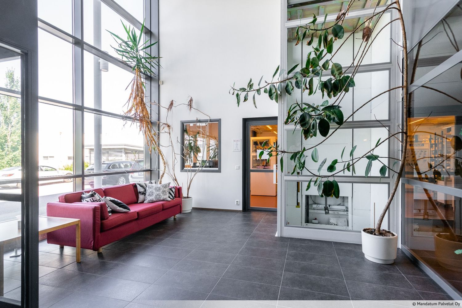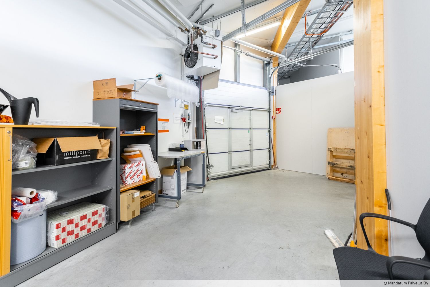Tila koostuu n. 800 m² hallitilasta sekä erillistä toimistotiloista. Hallitilan korkeus 3,3 m - 5,4 m. Tila on sisäänajettava ja nosto- oven koko on 3 m x 2,6 m. Lisäksi käytössä on yhteiskäyttöinen lastauslaituri. Aiemmin komponenttitehtaana palvelleessa tilassa on riittävä ilmanvaihto ja sähköistys. Kokonaisuuteen kuuluu myös erillinen noin 16 m² varasto palavien nesteiden säilytykseen. Tämä tila on vapaa 1.9.2026 alkaen.