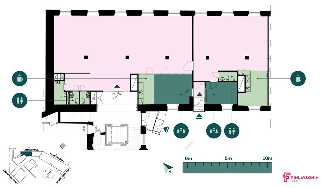 Vuokrataan läpitalon toimisto upein koskinäkymin, vapautuu 1.9.2026. Tilaan on kaksi sisäänkäyntiä, tilaan pääsee sekä hissillä että portaita. Tilasta löytyy kaksi taukokeittiötä ja wc-tilat sekä kaksi neuvottelutilaa. Ohessa havainnollistavia kuvia.