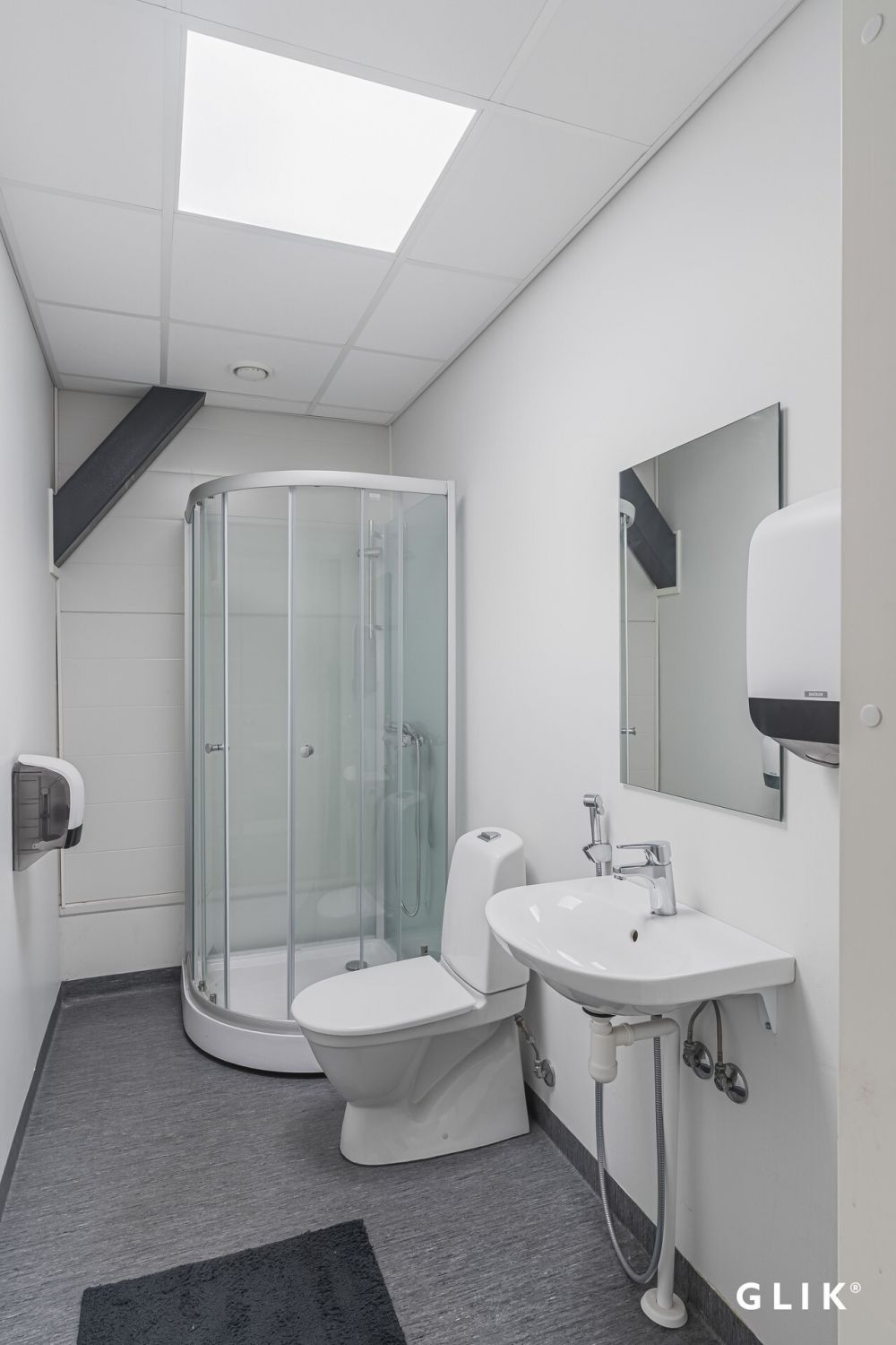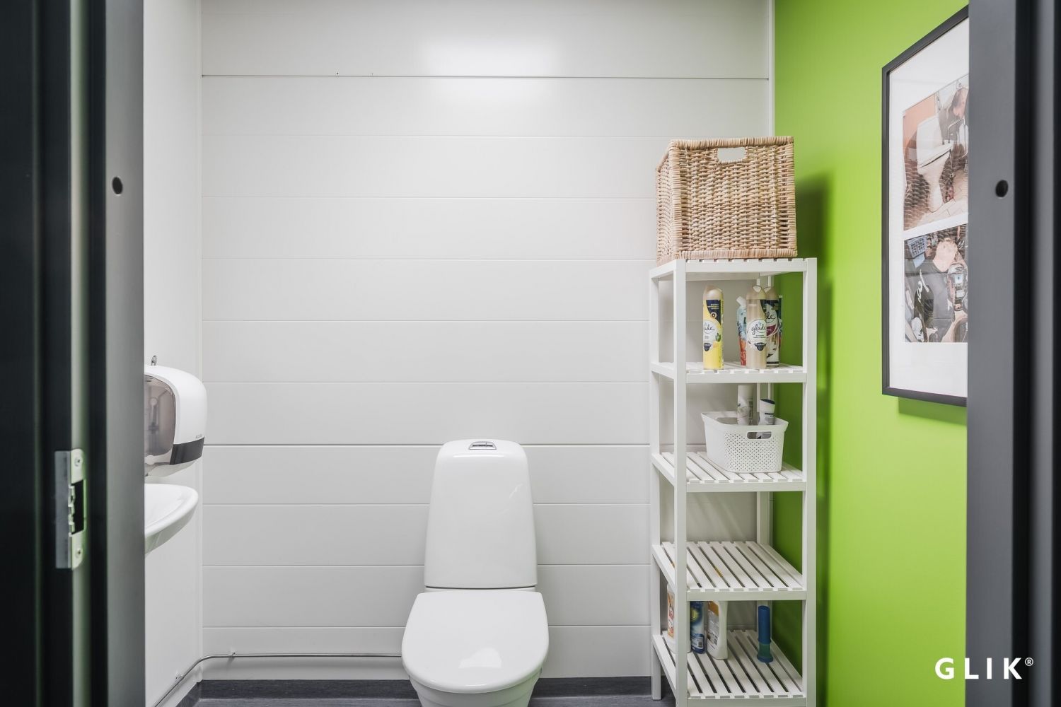Useita voimavirtapistokkeita ja kuituliittymä sekä led-valaistus. Katutasossa sijaitsee erillinen esim. asiakaskäyttöön soveltuva tilava wc. Lisäksi kolme lasiseinällistä huonetta, keittiö ja pukuhuone jonka yhteydessä on kaksi erillistä wc/suihkutilaa.