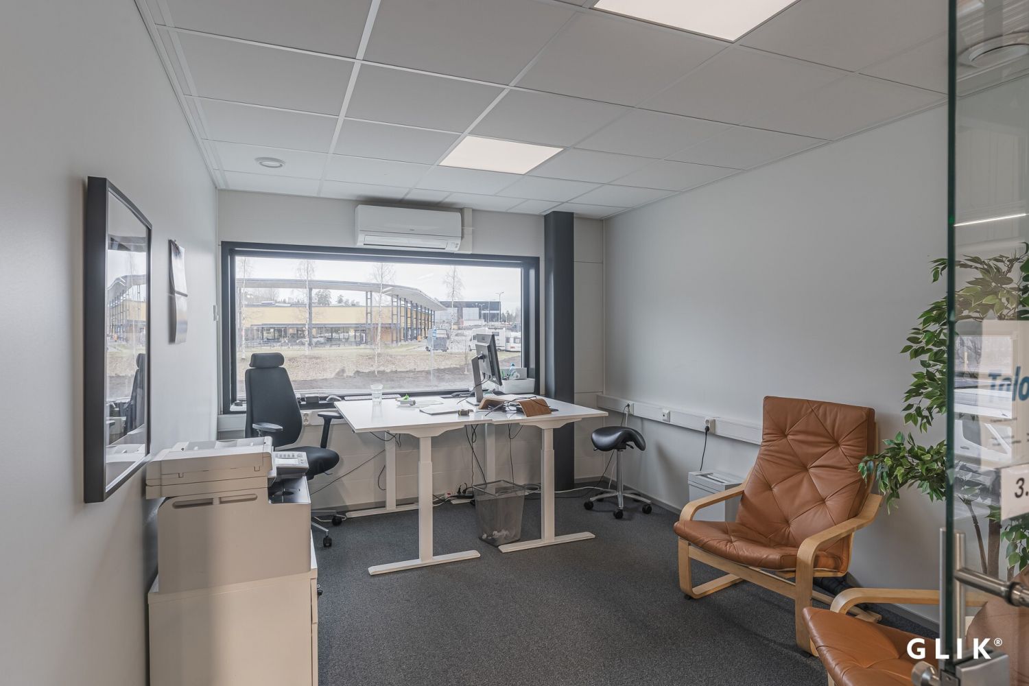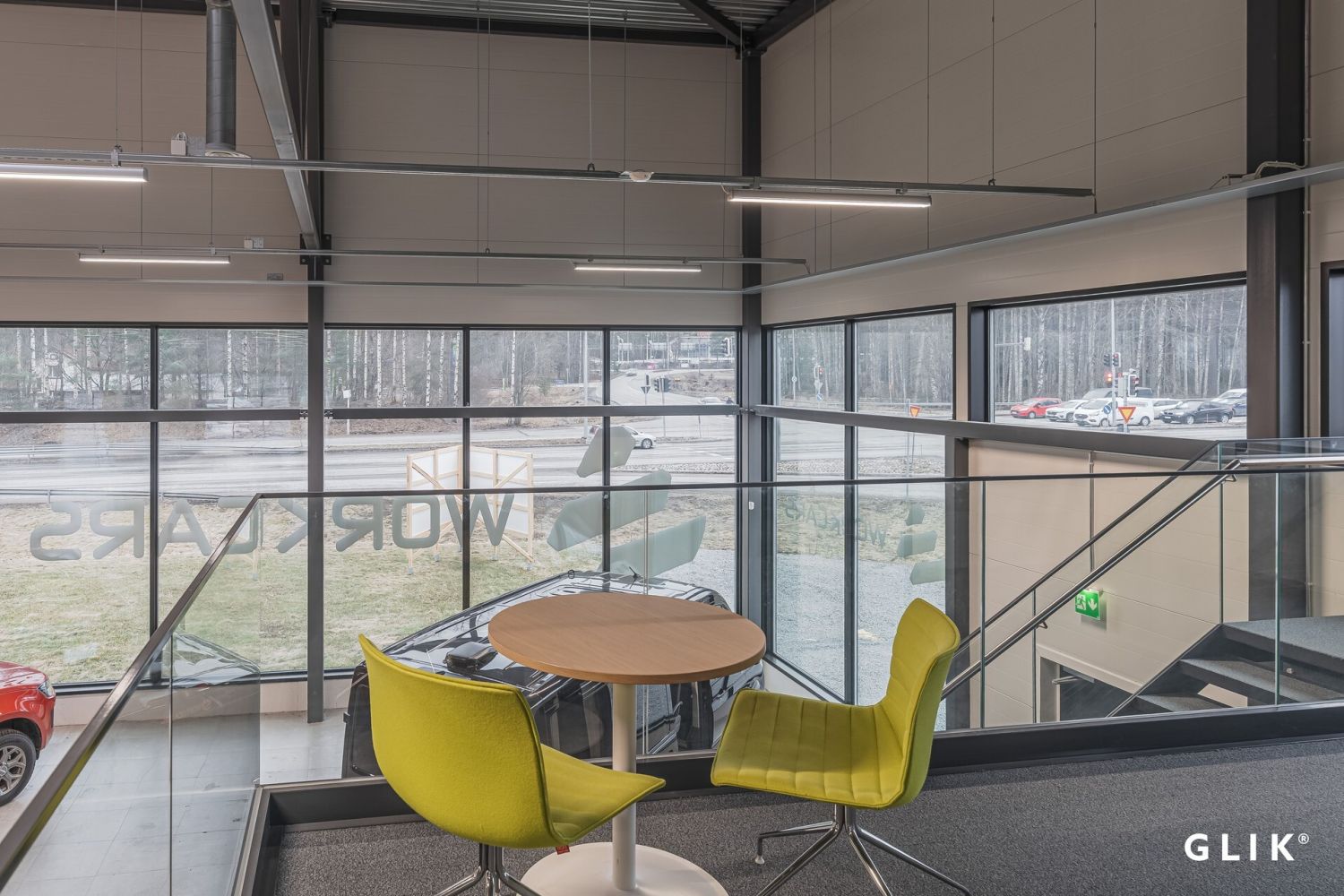 Tämä noin viisi vuotta sitten valmistunut kiinteistö on kahdessa kerroksessa. Alakerta on avointa tilaa ja yläkerrassa on tyylikkäät toimistotilat.