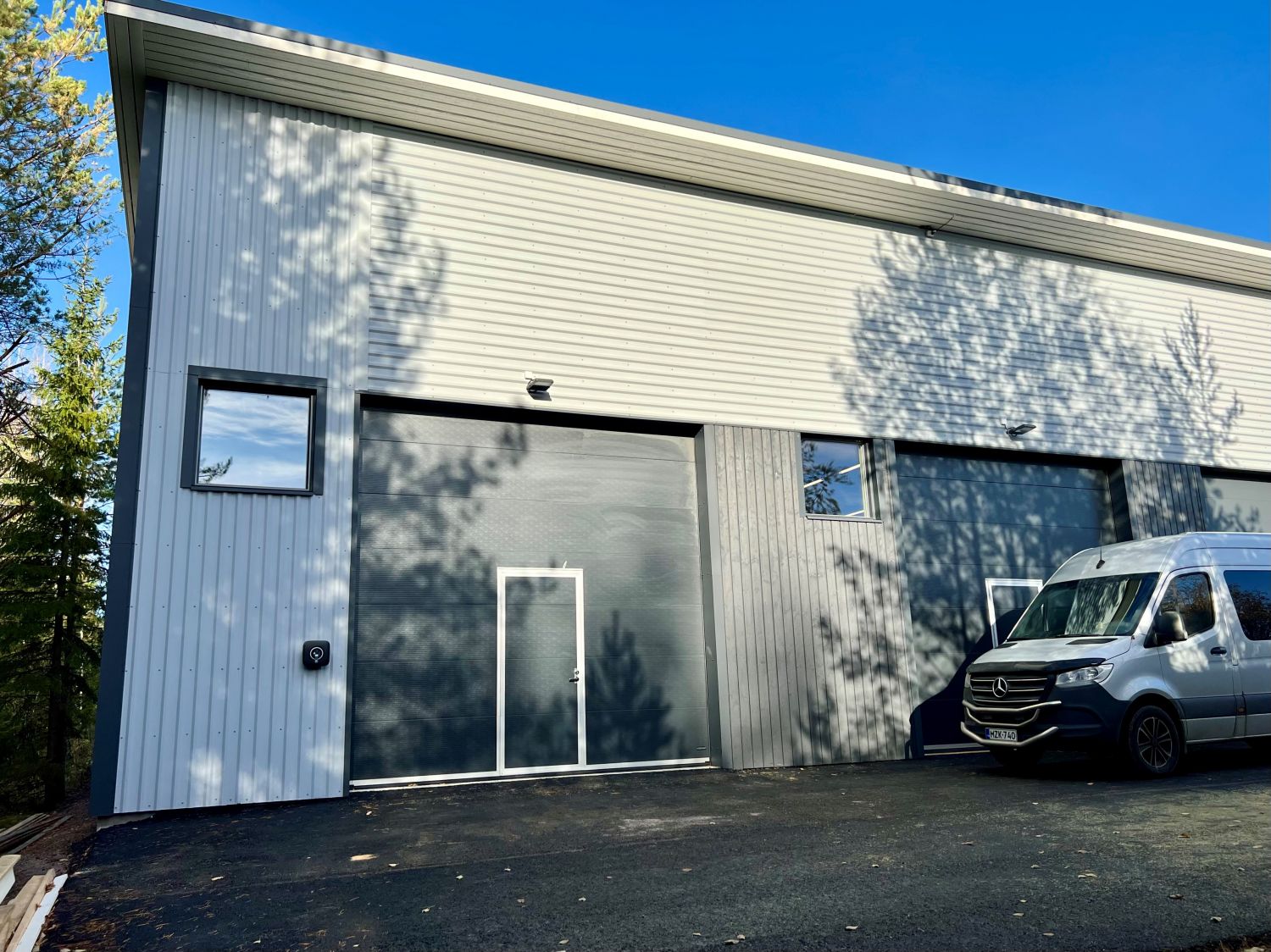 • Sähkökäyttöinen nosto-ovi + erillinen käyntiovi