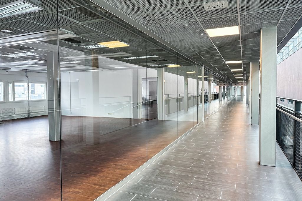 Tämä 133 m² showroomiksikin soveltuva valoisa toimistotila sijaitsee kiinteistön 6. kerroksessa. Kuvat ovat yleiskuvia kiinteistön tiloista.