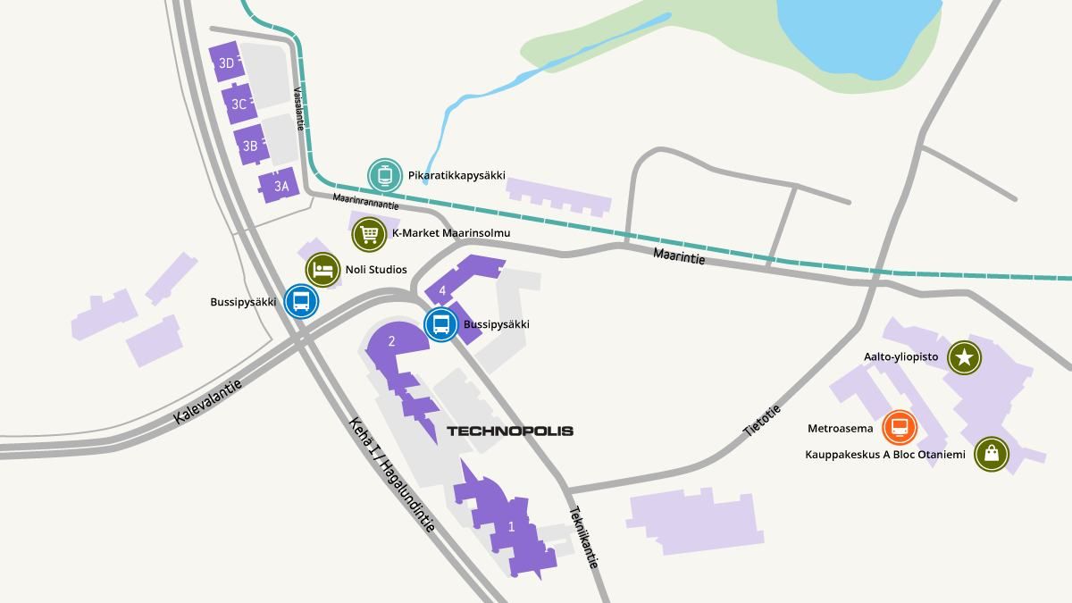 Kampuksen sijainti Kehä I:n varrella on erinomainen â Helppo saavutettavuus metrolla, bussilla, pikaratikalla ja autolla. Kampus sijaitsee myös lähellä Aalto- yliopistoa ja teknologiaosaamisen keskittymää â tämä on ihanteellinen paikka yhteistyölle ja verkostoitumiselle!