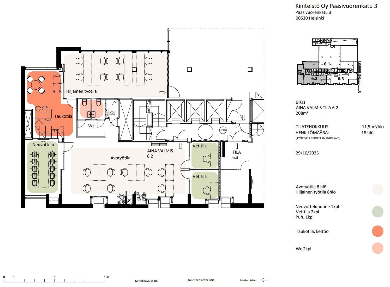 Vuokrataan Helsingin Hakaniemestä kuudennen kerroksen 208 m² toimistotila.