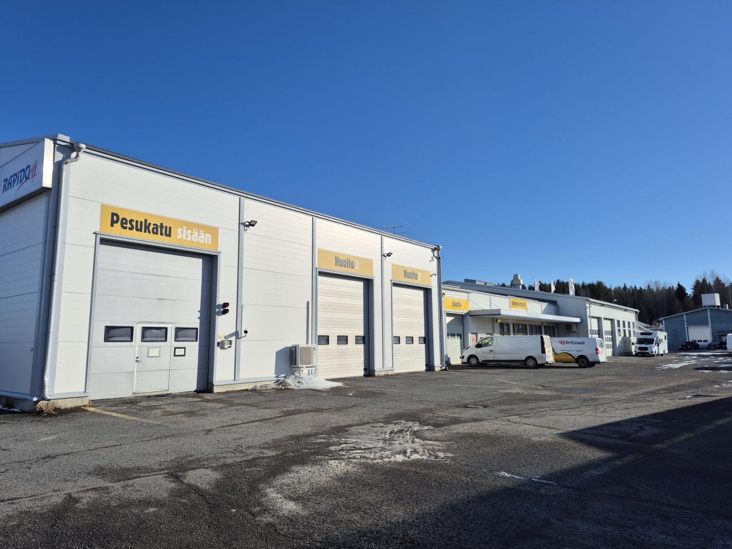Huippu paikalla Hyvinkään Veikkarissa, Tampereen moottoritien varrella kolmen hallin kokonaisuus + 1,6ha tontti. Hallit ovat kooltaan 380m2, 1432m2 ja 924m2. Hallit toimivat monenlaisessa käytössä mm korjaamona, autokauppana, myymälänä, tukkukauppana jne. Yksi halleista entinen konepaja, joten sähköt riittävät isompaankin tarpeeseen.