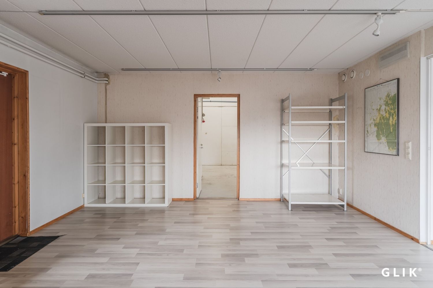 Keskimäisessä hallitilassa on tilaa noin 80m2 lattiakaivo + vesipiste. Toimistopäädyssä, noin 90m2 siistiä työtilaa ja keittokomero, 2 x wc ja suihku, sekä siivouskomero, yläkerrassa matalaa alle 2m korkeata varastotilaa.