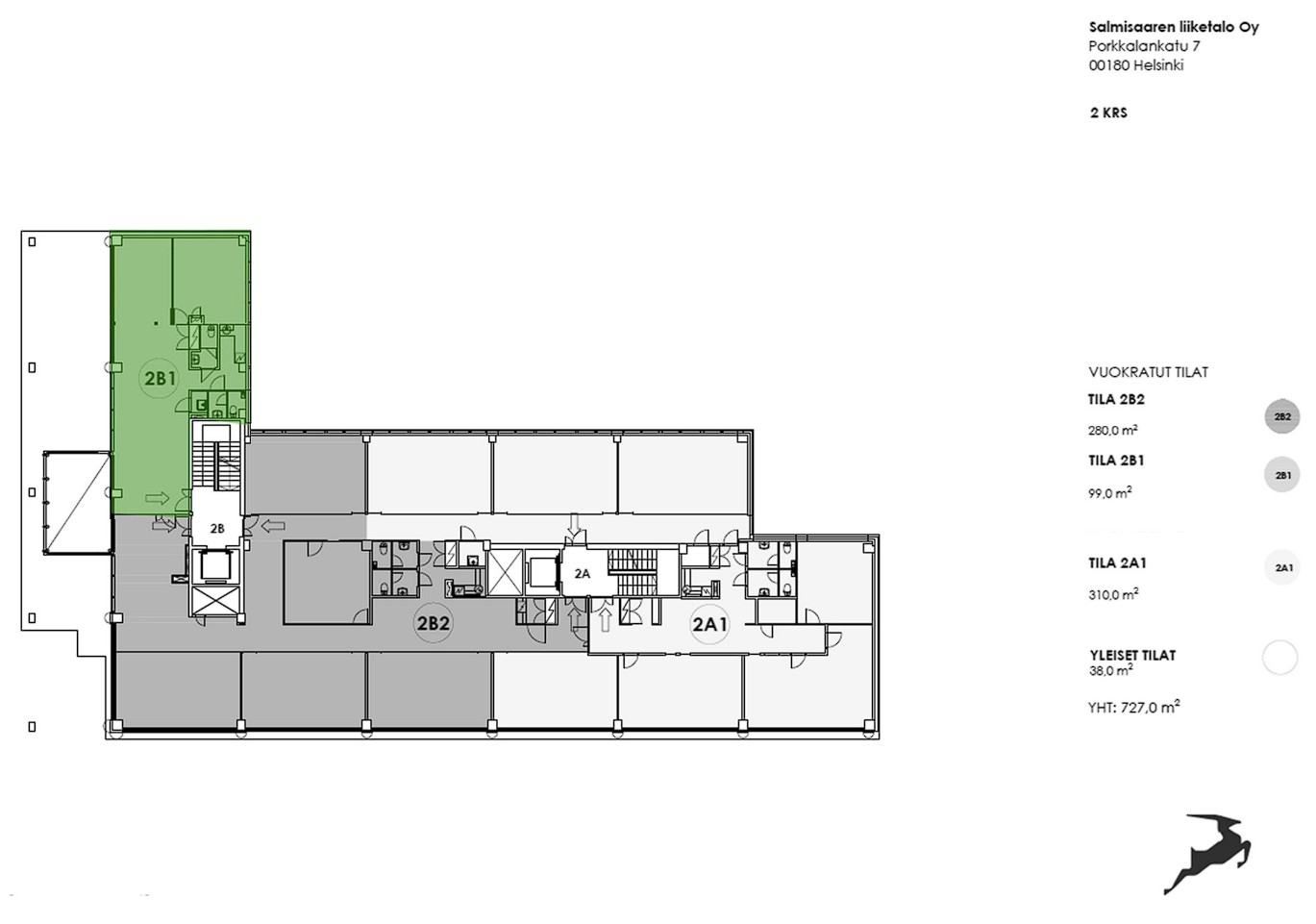 Vuokrataan Helsingin Ruoholahdesta toisen kerroksen 99 m² liike/toimistotila.