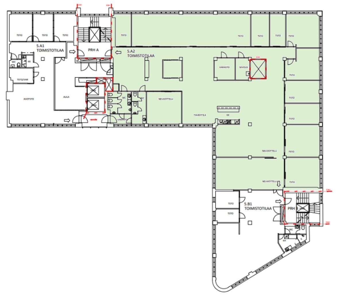 Vuokrataan Helsingin Ruoholahdesta viidennen kerroksen 716 m² toimistotila.