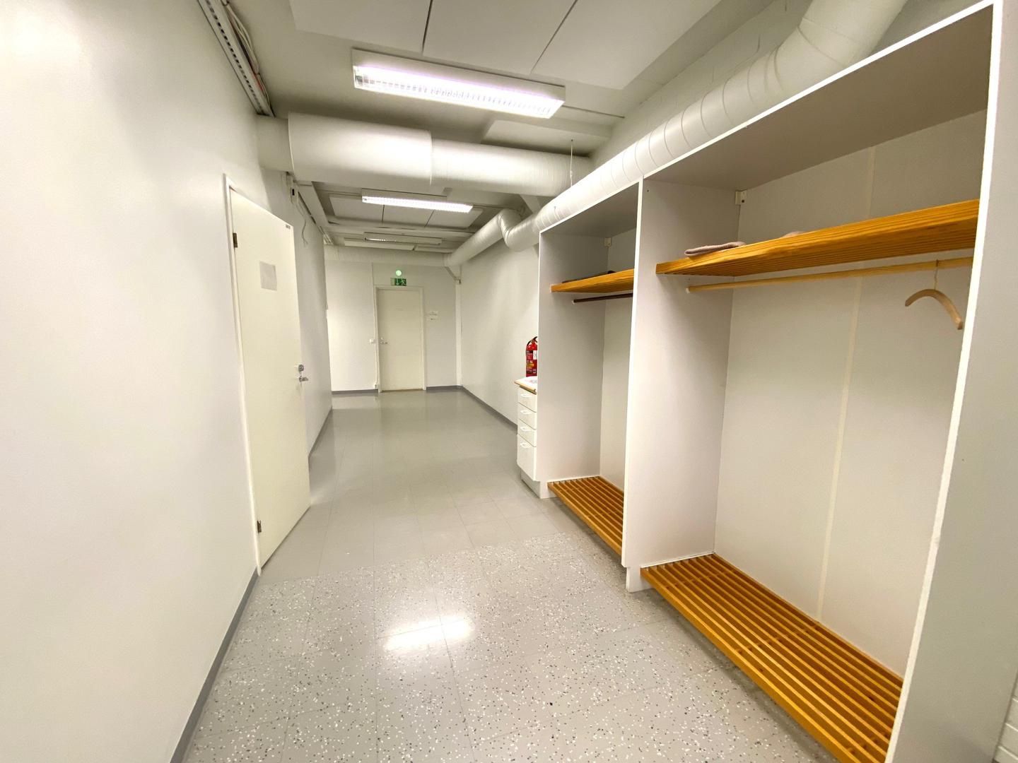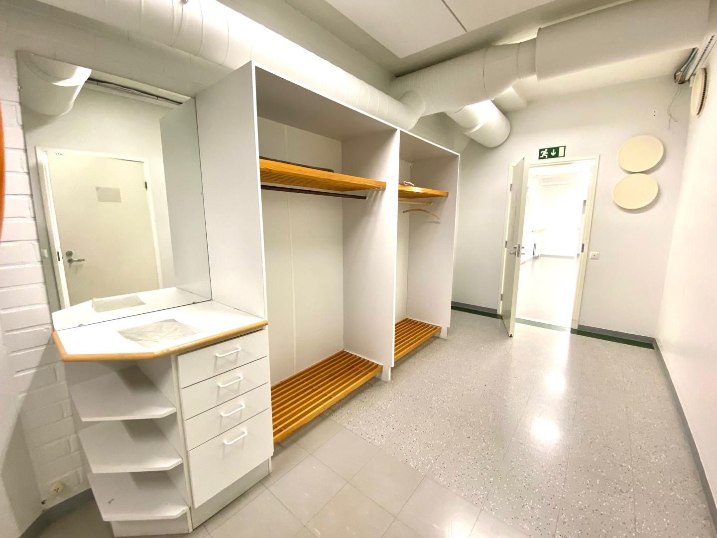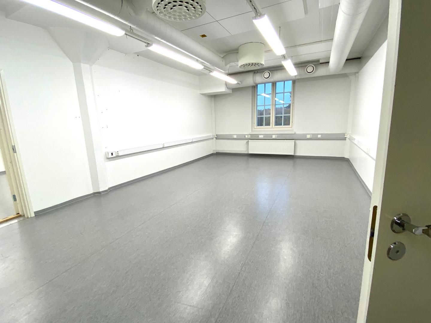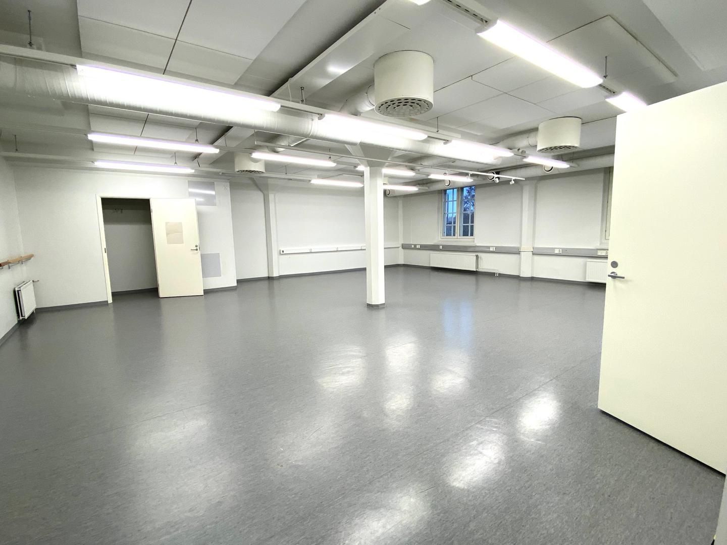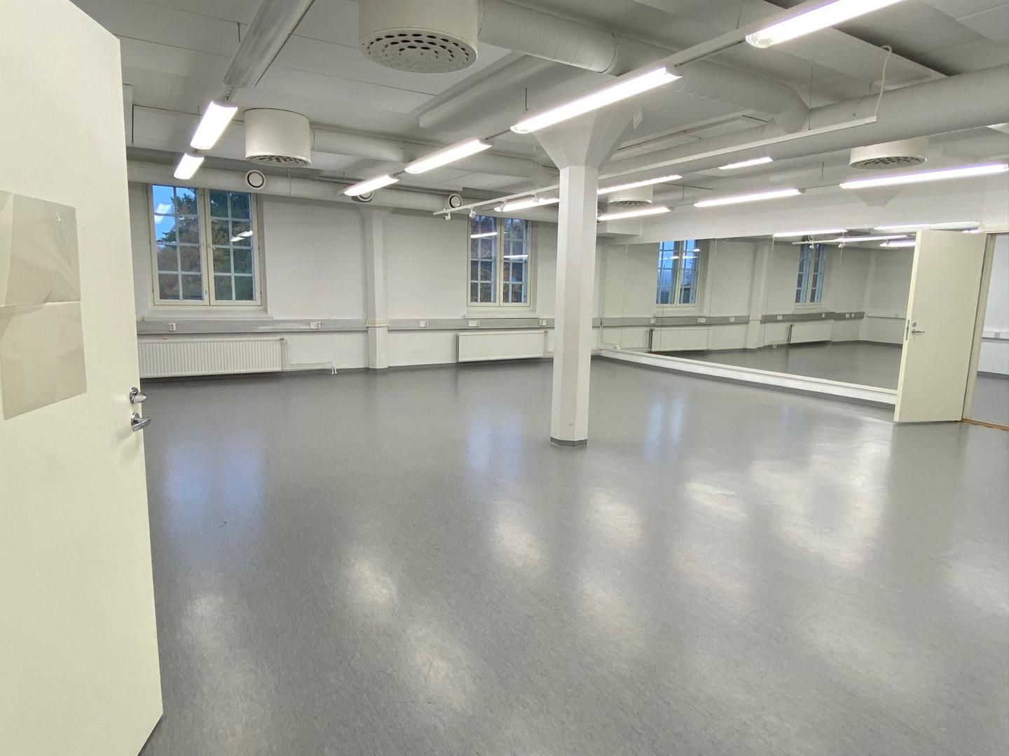 Yksi huoneista on suuri n. 10m x 10m kokoinen. Tällä hetkellä huoneessa on yksi kokonainen peiliseinä. Tilan yhteydessä varastokomero.