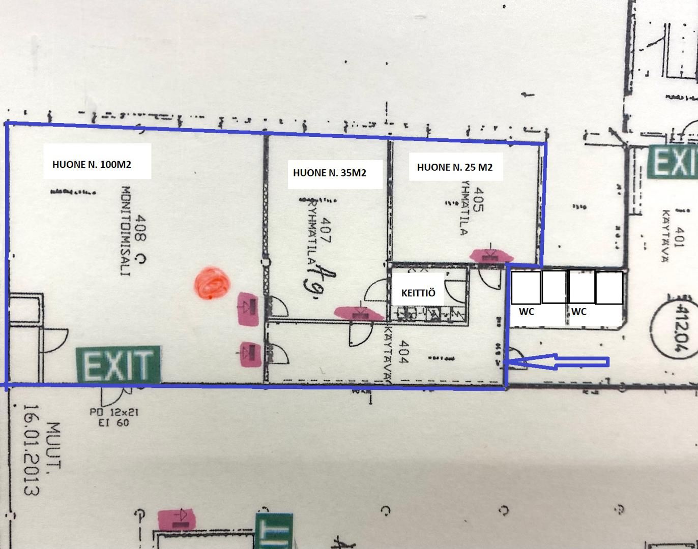 Vapaana on A-rapussa 3. kerroksessa n. 200m2 kokoinen toimisto- tai monikäyttötila. Rapussa on hissi.