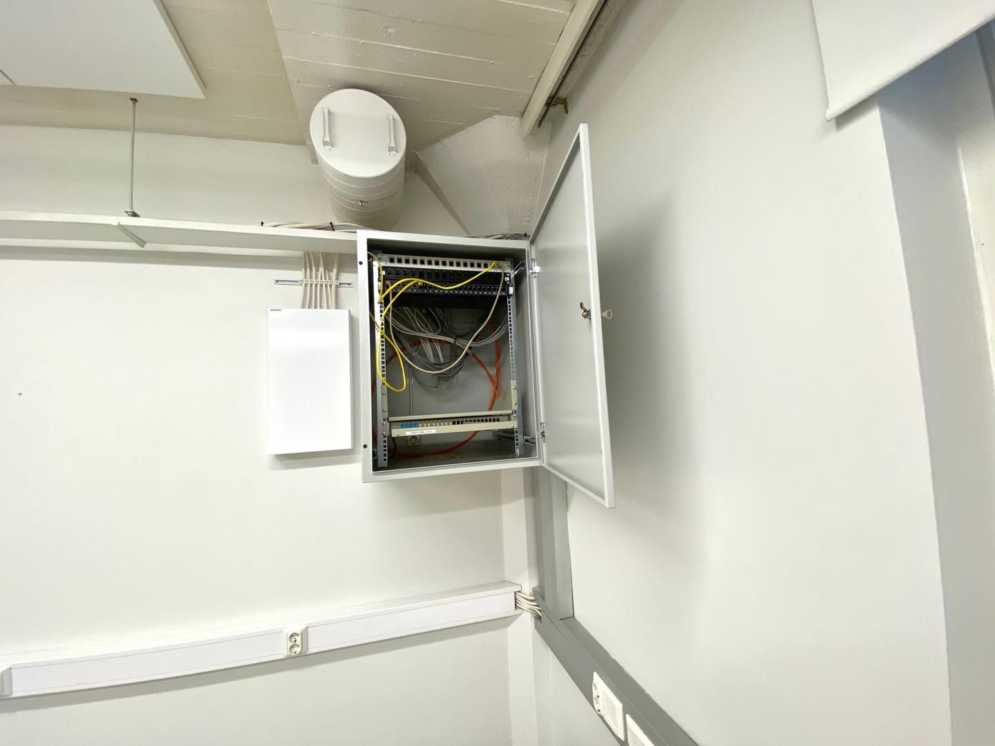 Tila koostuu kolmesta huoneesta, pienestä keittiöstä ja eteistilasta. Heti toimiston oven ulkopuolella on kaksi wc-tilaa joissa molemmissa kaksi wc-koppia. Tilaan tulee kiinteä verkkokaapeli. Tähän toimistoon on rakennettu tehokas ilmanvaihto omalla ilmastointikoneella, joten sisäilma pysyy hyvänä.