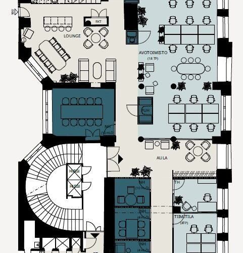 Vuokrataan Helsingin Kluuvista toisen kerroksen 512,5 m² toimistotila.