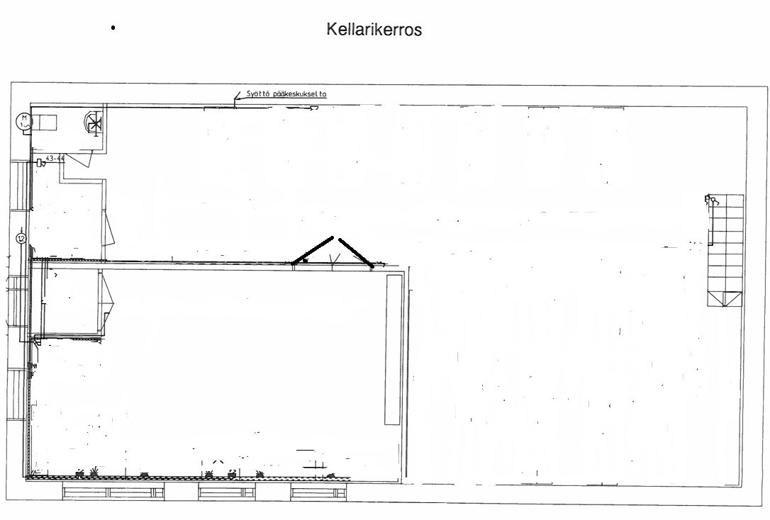 Kellaritila: n. 200 m2 tuontatotilaa sekä varastotilaa, wc. Tilasta käynti ulos. Tilan korkeus n 2,1 m.