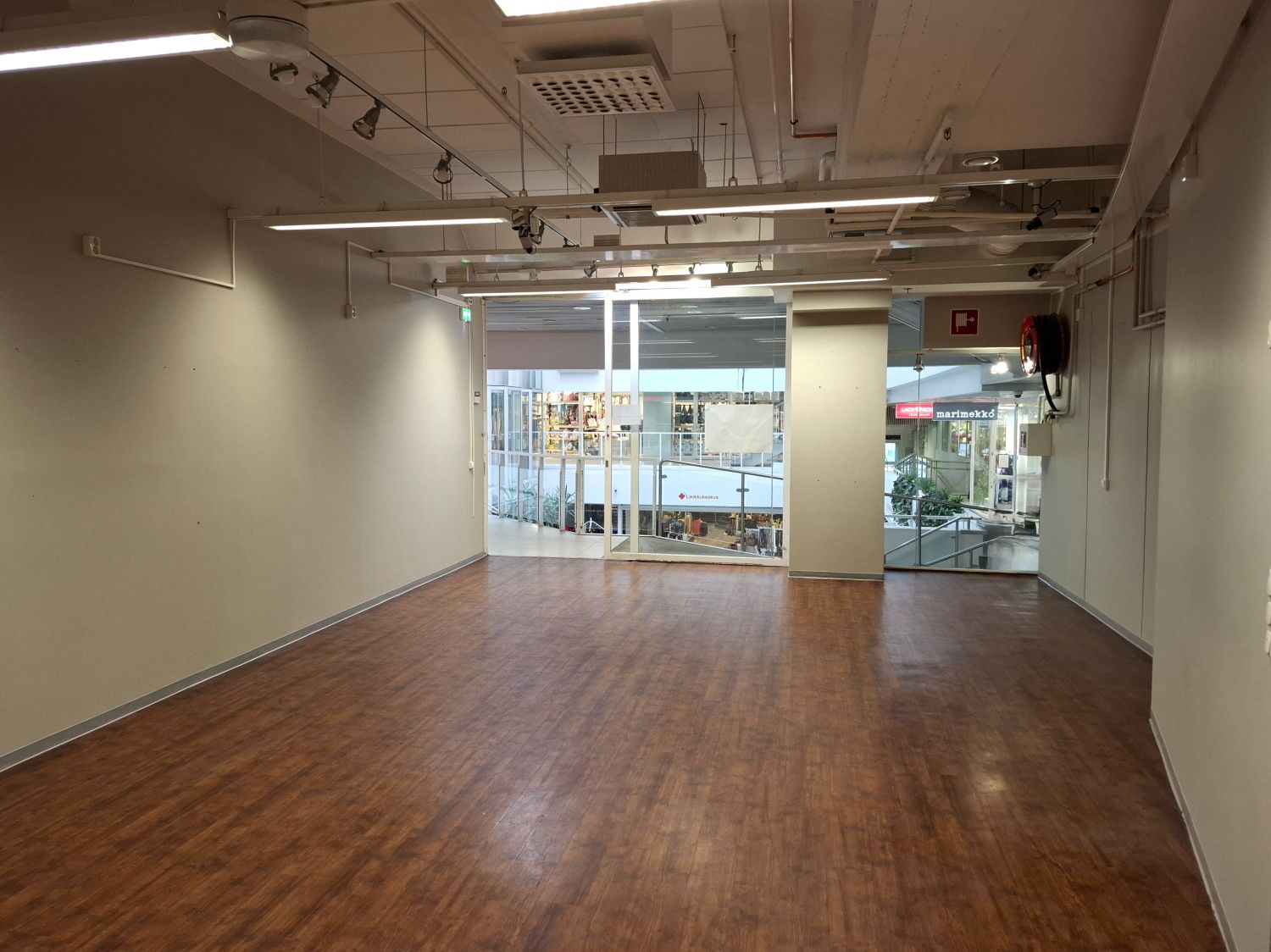 Liikkeessä on isot lasiovet jotka antavat hyvän näkyvyyden tilaan asiakkaille.