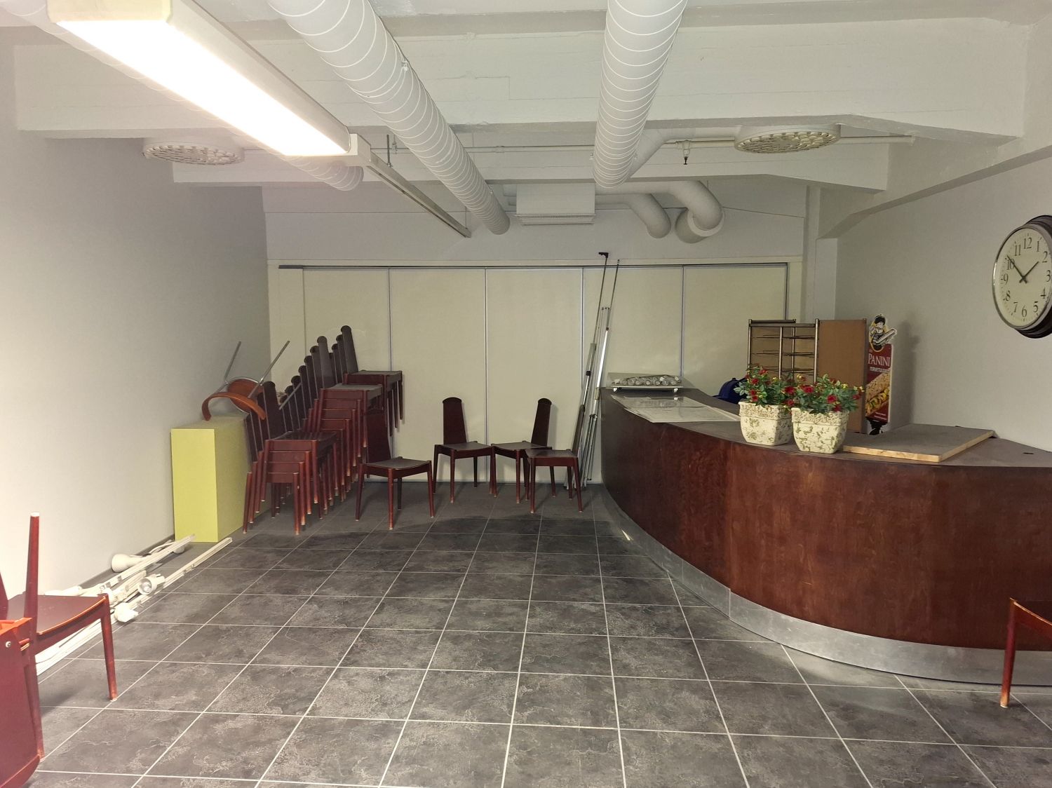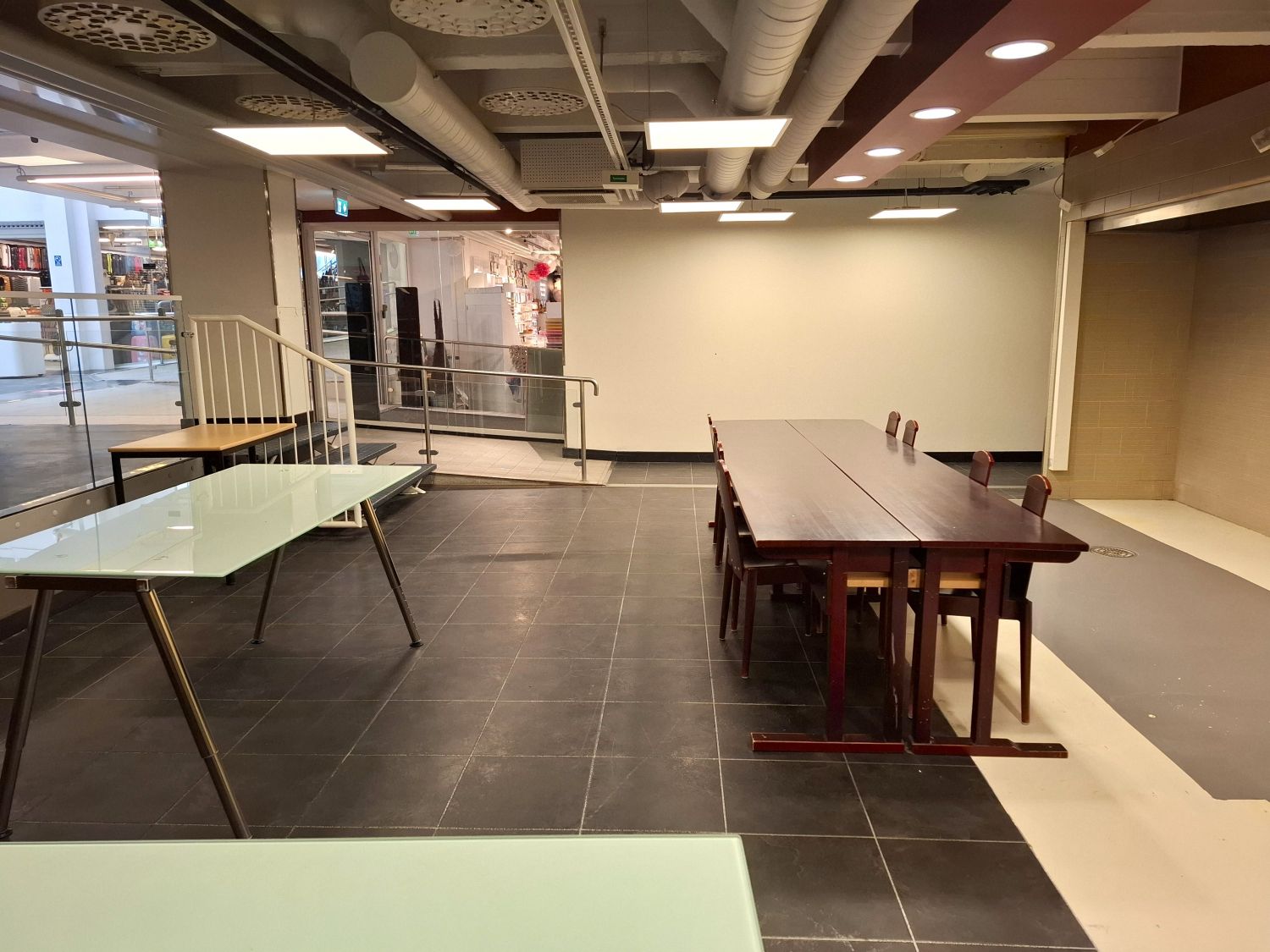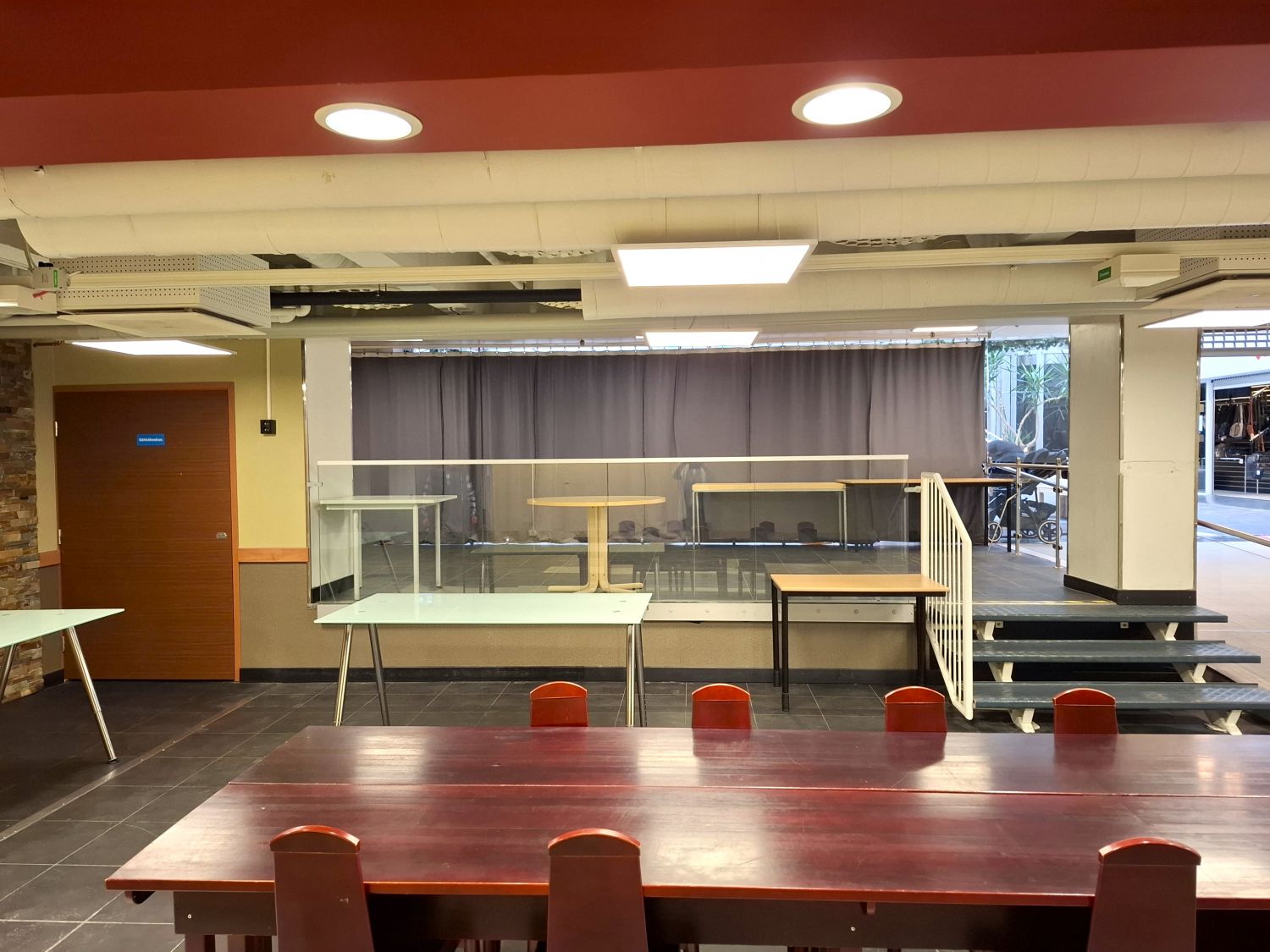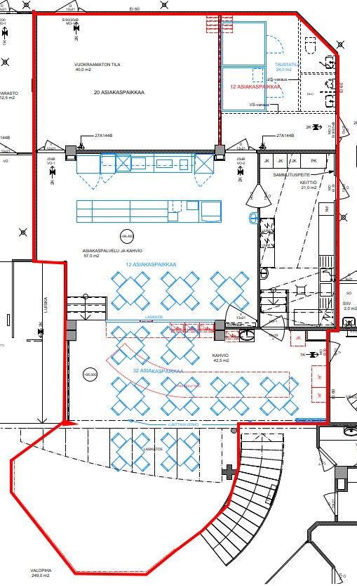 Tilassa valmius kevyempään kahvila- ja tarjoilutoimintaan ilman raskaan keittiön investointeja.