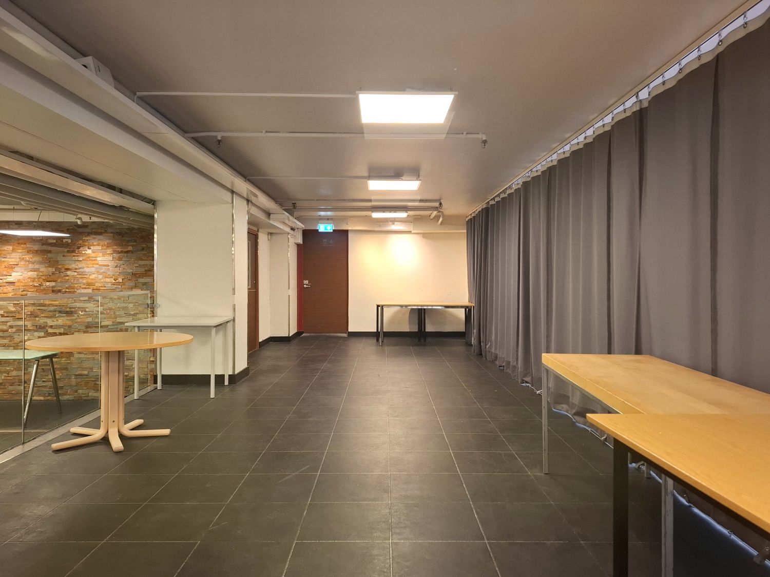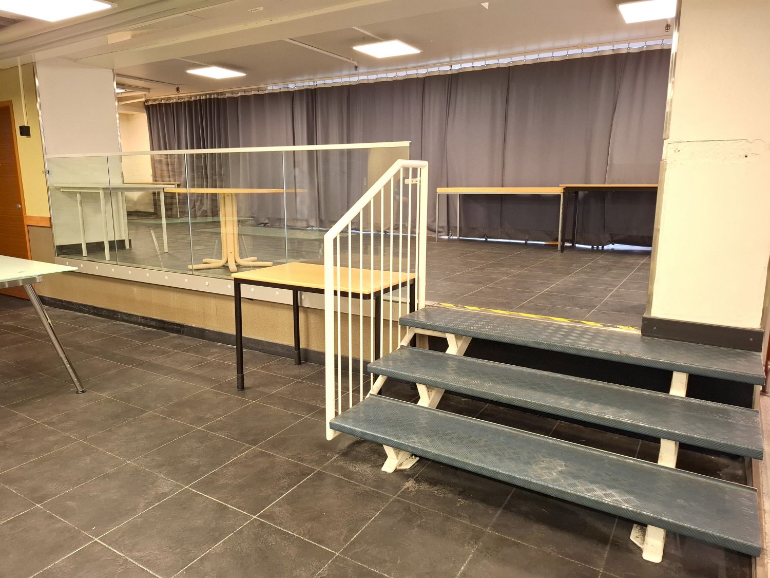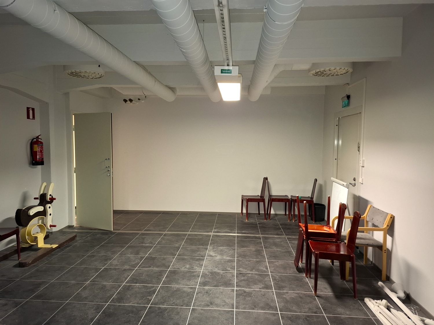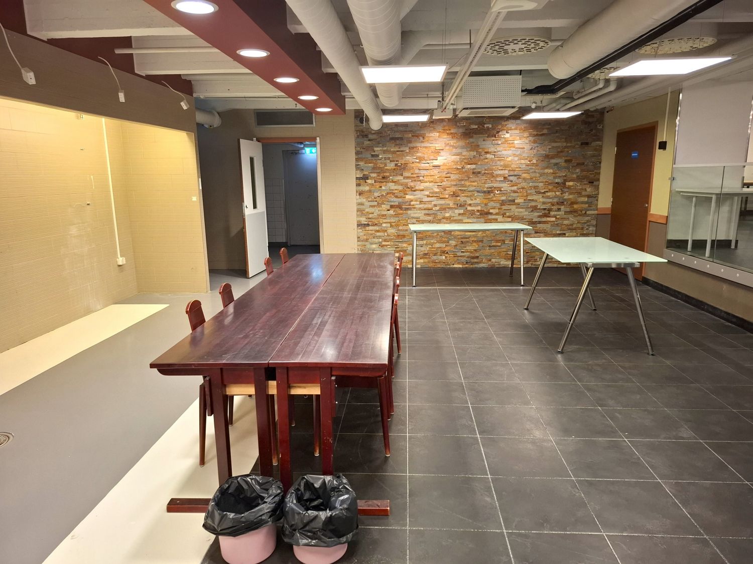 Tilassa valmius kevyempään kahvila- ja tarjoilutoimintaan ilman raskaan keittiön investointeja.