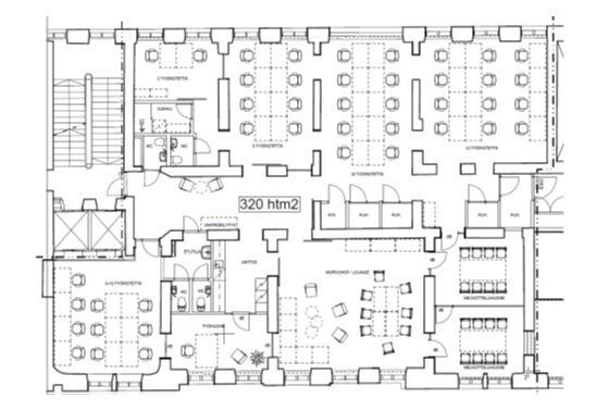 Tämä näyttävä ja valoisa 320 m² toimistotila sijaitsee kiinteistön 3. kerroksessa. Toimistossa on huoneita, avotilaa sekä omat keittiö- ja wc-tilat.
