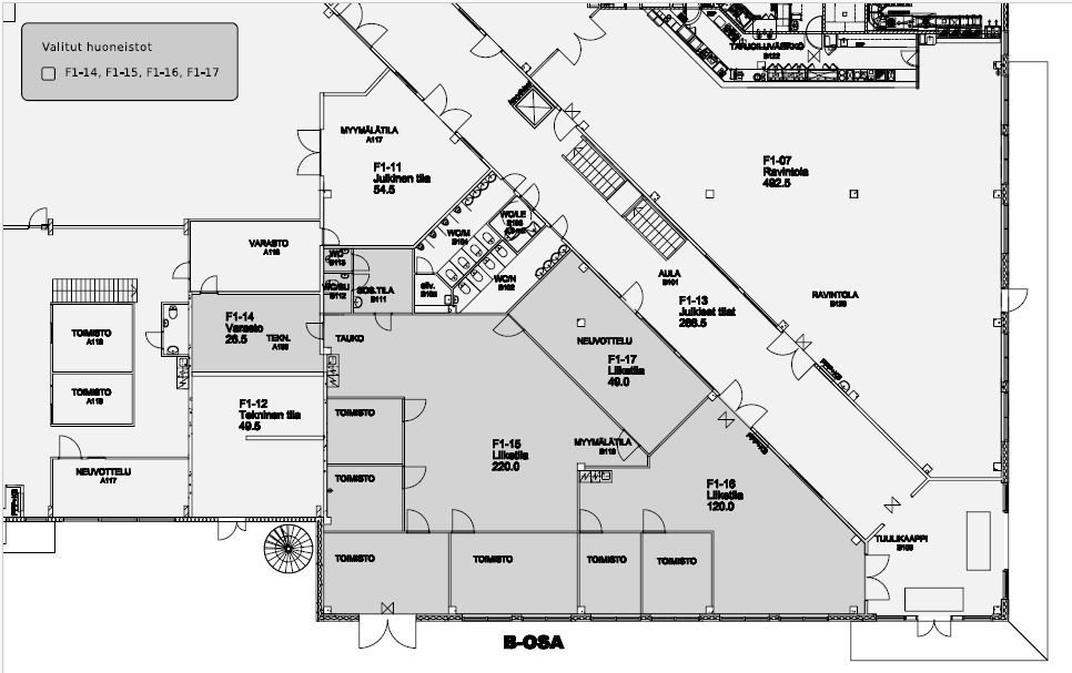 Vuokrattavana katutason liiketila 169 m2. Tila on mahdollista laajentaa lisäämällä viereinen liiketila 246.5 m2 jolloin kokonaisuus yhteensä 415.5 m2.