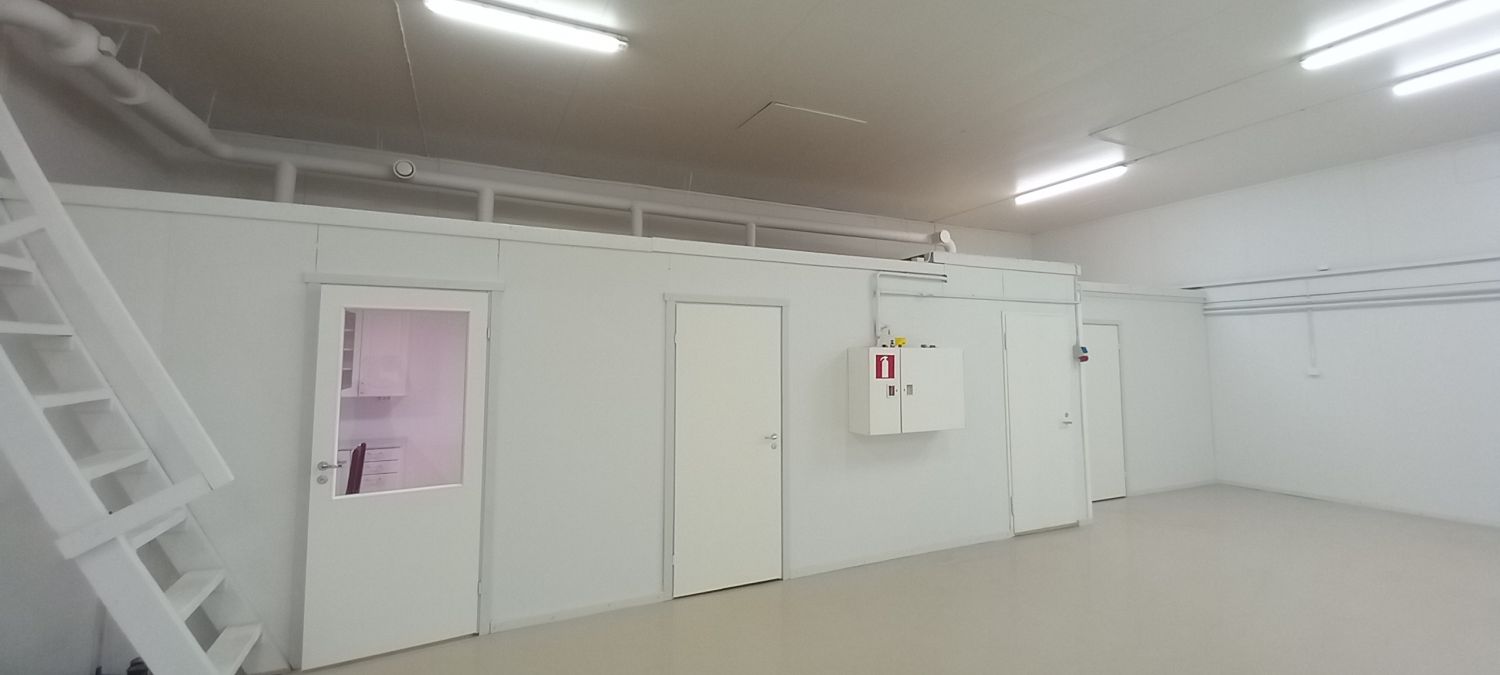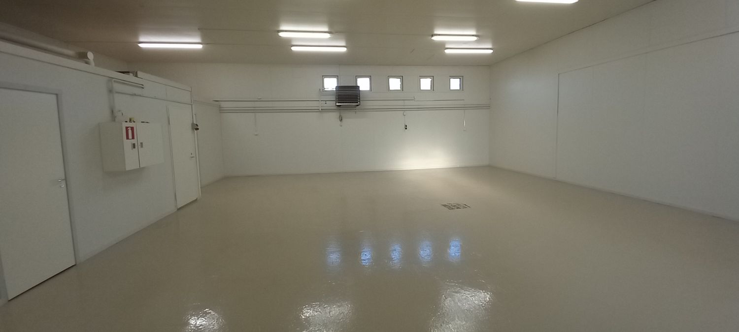 Hallin kokonaiskoko on 300 neliötä joka on jaettu kahteen 150 neliön tilaan.