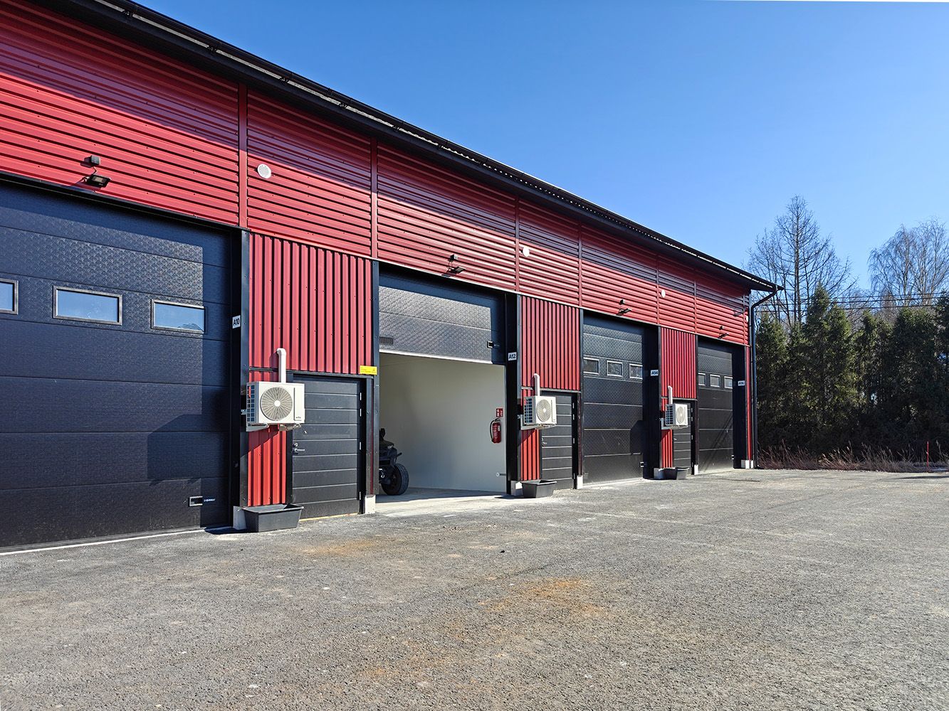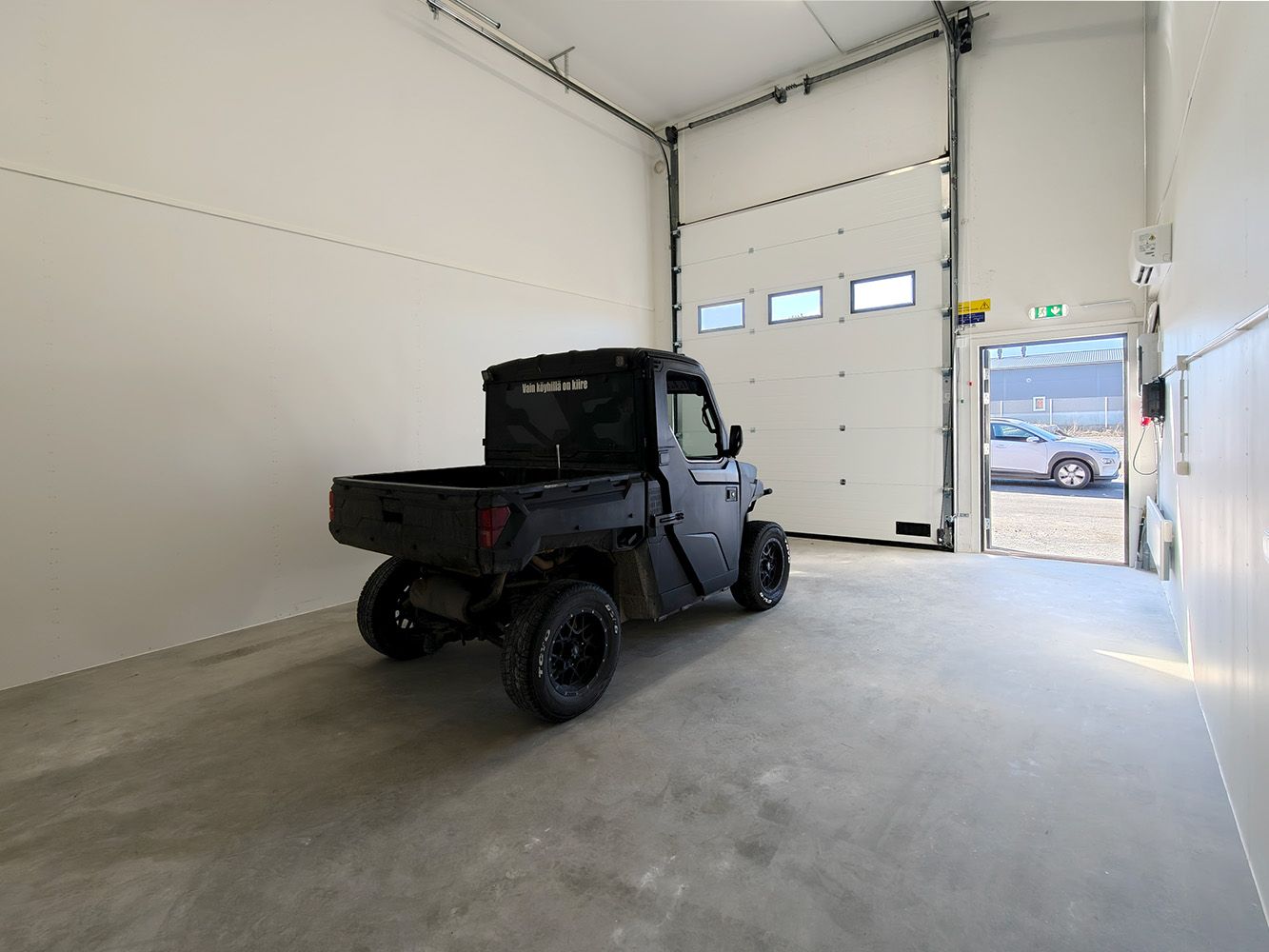 Kunto, varusteet ja palvelut: Uusi tila. Sähkökäyttöinen nosto-ovi käyntiovella, kaukosäädin nosto-oveen, lattiakaivo hiekan ja öljyn erotuksella, vesipiste, wc-varaus ja ilmalämpöpumppu