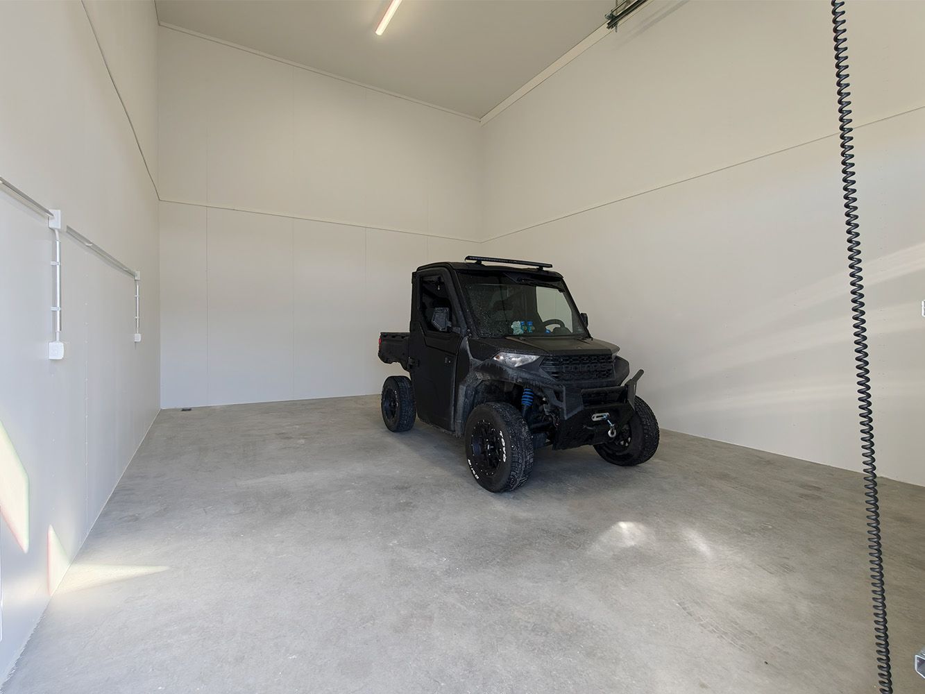 Hallin lattia pinta-ala on noin 39 m² ja sen syvyys on 7,1 metriä ja leveys 5,4 metriä. Hallin vapaa korkeus on 5,4 metriä. Hallin varusteluun kuuluu sähkökäyttöinen ja kaukosäätimellä toimiva nosto-ovi (L3,3 m x 4,0m) erillisellä käyntiovella, lattiakaivo hiekan – ja öljyn erotuksella, vesipiste, wc-varaus ja ilmalämpöpumppu.