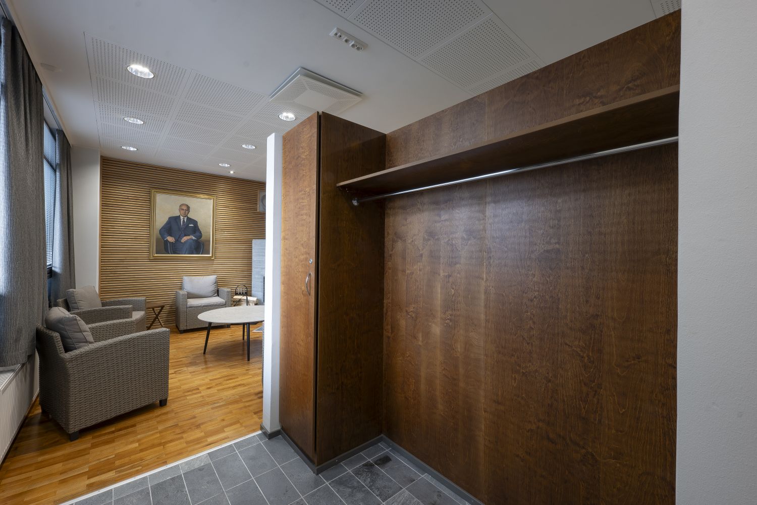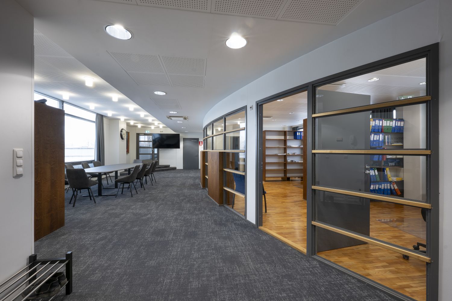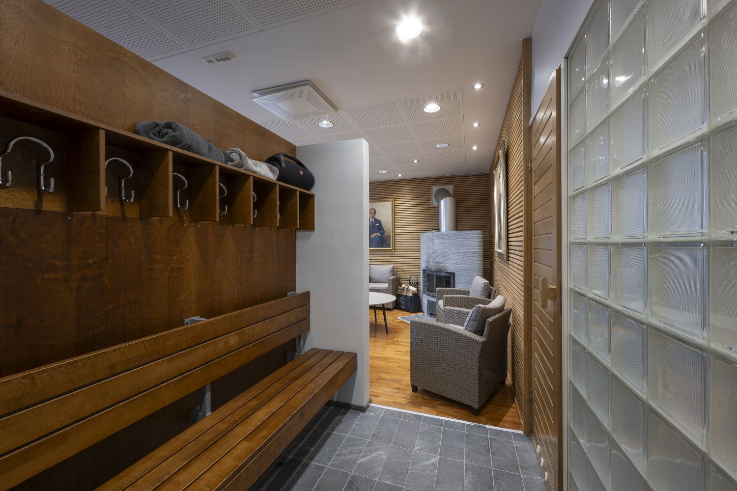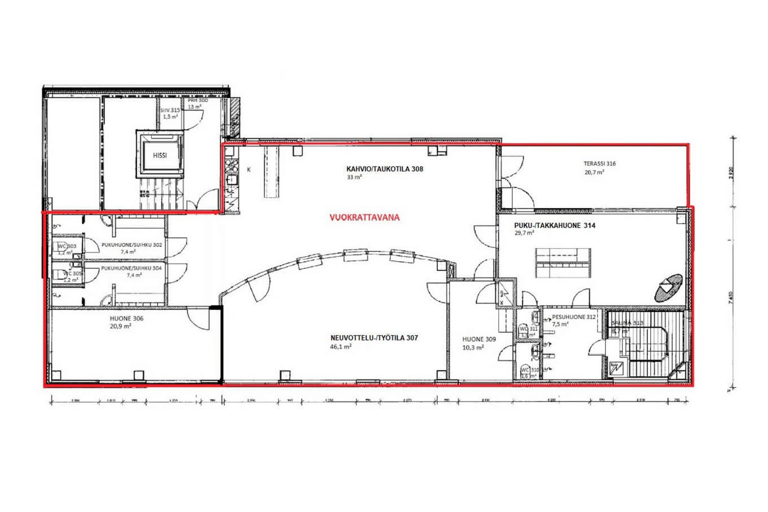 Henkilöstön mukavuus on huomioitu erinomaisesti: kaksi erillistä wc-tilaa, kaksi pukuhuonetta ja jopa oma sauna tarjoavat poikkeuksellisen hyvät työskentelyolosuhteet. Lasitettu 22 neliömetrin terassi tuo lisää tilaa ja valoisuutta.