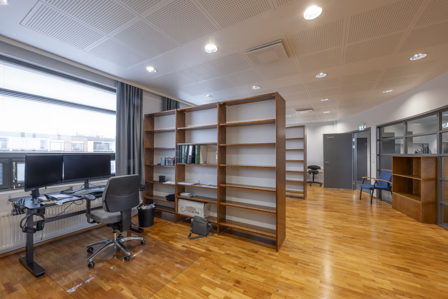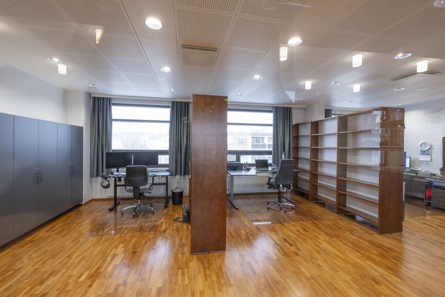 Tilat on suunniteltu monipuoliseen toimistokäyttöön. Kahden toimistotilan lisäksi löydät erillisen neuvottelu- tai työhuoneen, jossa voit järjestää kokouksia tai keskittyä vaativampiin tehtäviin. Mukava kahvio- ja taukotila luo viihtyisän ympäristön työpäivien lomaan.