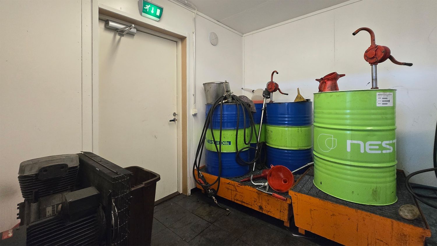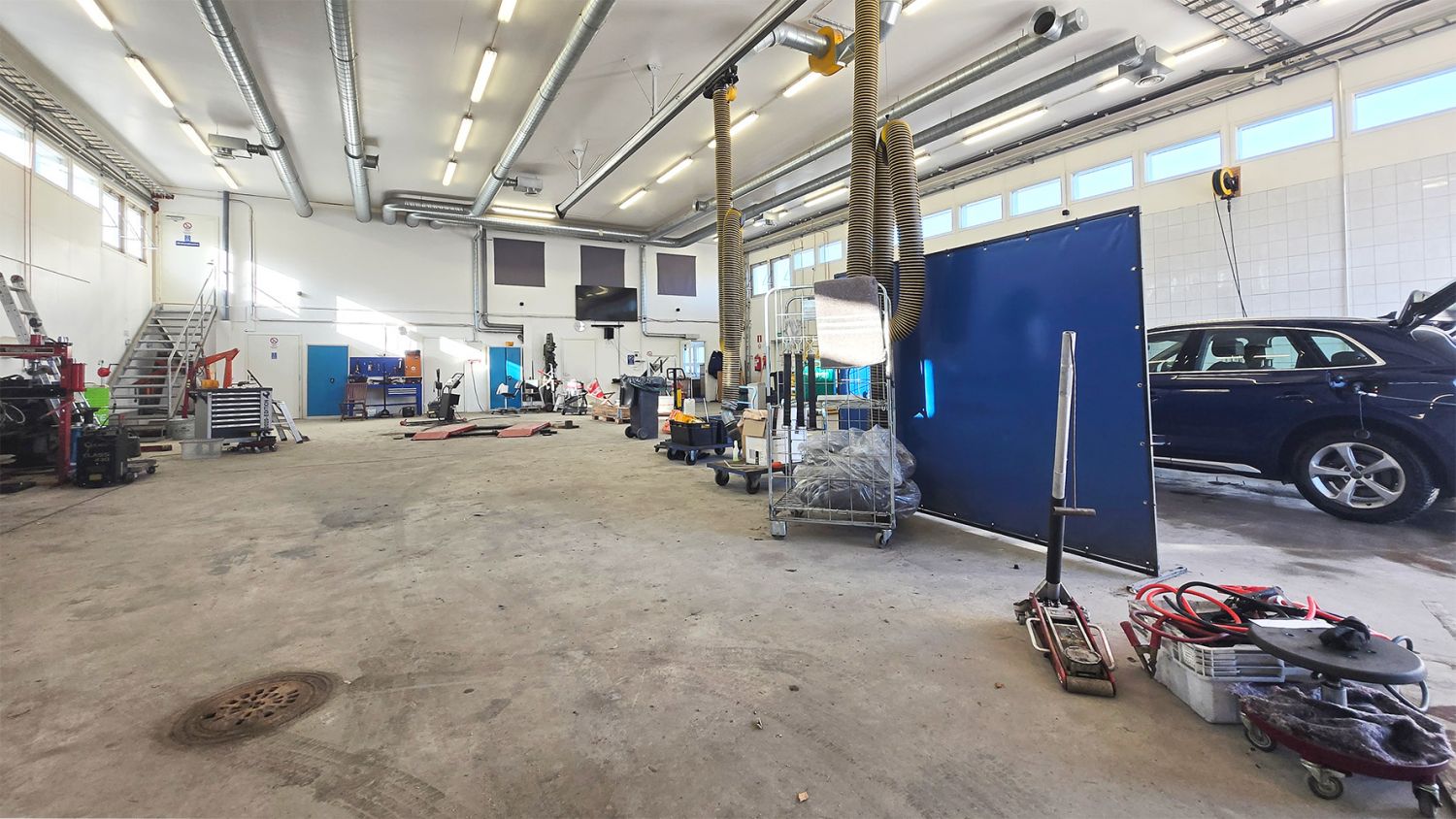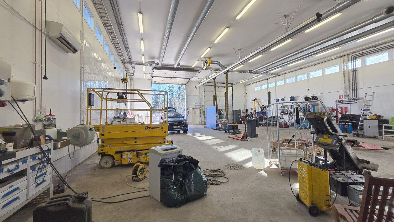 Kunto, varusteet ja palvelut: 2 kpl nosto-ovia käyntiovella, vesipiste, voimavirta, lattiakaivo, toimistotilat, ilmalämpöpumppu, keittiö, wc, suihku ja saunatilat