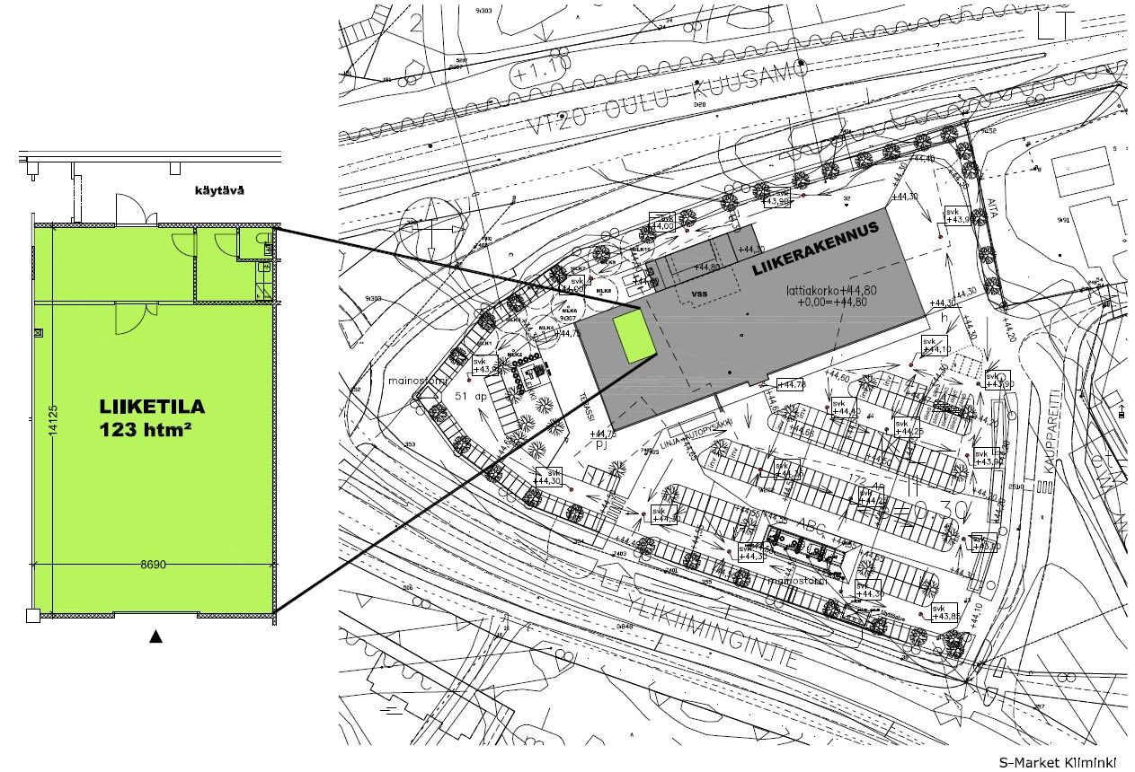 Samassa liikerakennuksessa toimii S-market Kiiminki, Alko, Apteekki, Kukkakauppa Sinituuli, Silmäasema, Musti&Mirri. Liikerakennuksen yhteydessä toimii myös ABC, joten asiakasviirtaa riittää! Liikerakennuksen pihalla on iso pysäköintialue.