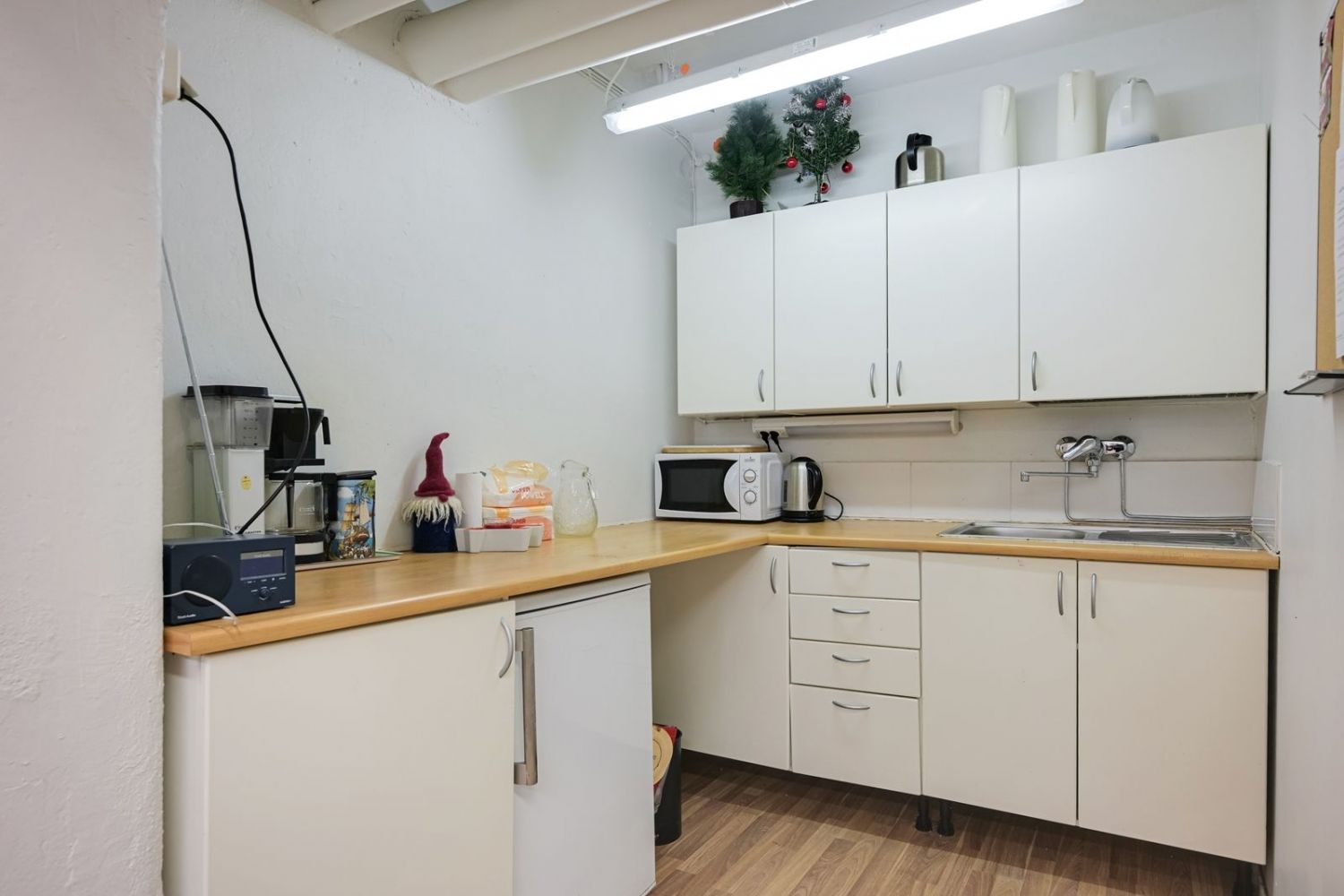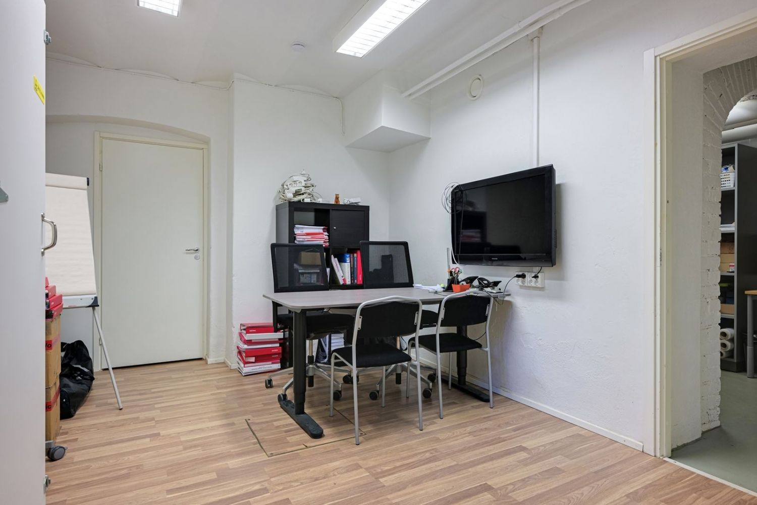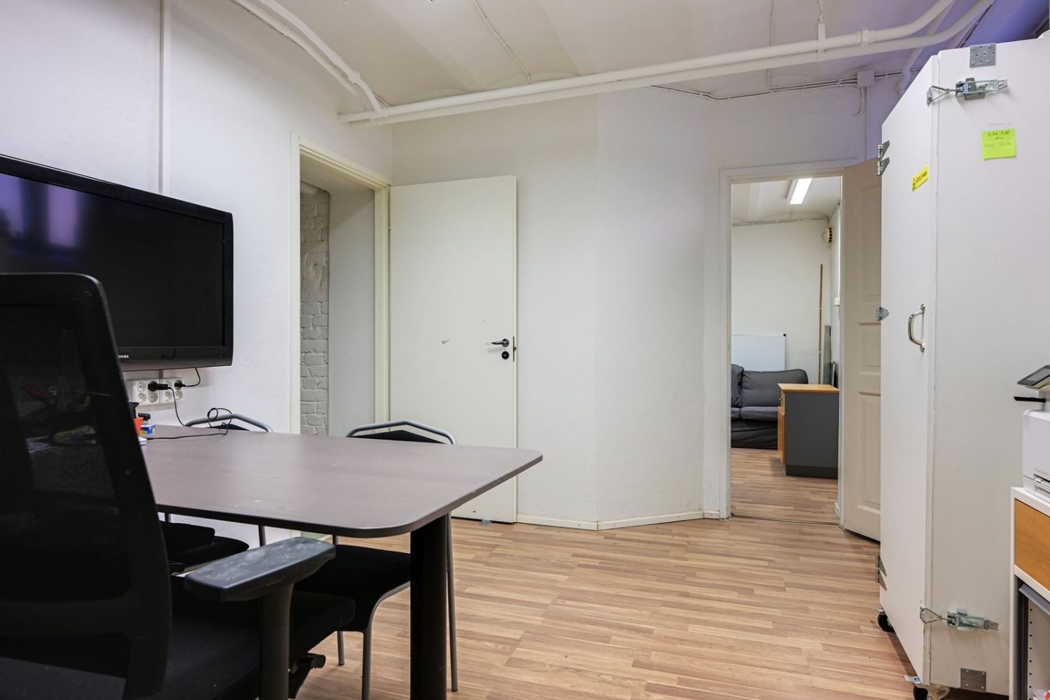 Tilakokonaisuus sisältää kaksi erillistä huonetta sekä tilavan varastotilan. Pohjaratkaisu mahdollistaa käytön moneen eri tarpeeseen, esimerkiksi toimistoksi tai kevyttä varastointia vaativaan toimintaan. Sisäänkäynti sisäpihan puolelta.