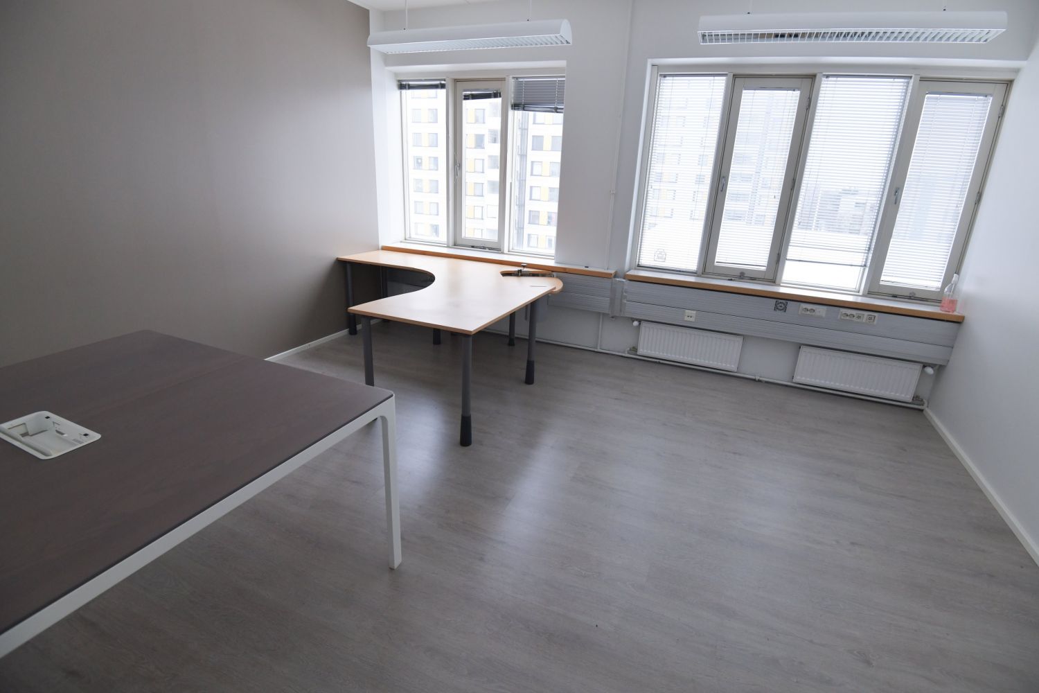 Myytävät tilat sijaitsevat rakennuksen 7. kerroksessa (koko kerros). Yksittäisten toimistohuoneiden lisäksi kerroksesta löytyy tilava kokoushuone, keittiö ja wc:t. Tarjolla on valoisaa ja siistiä toimistotilaa n. 1037 m2, joka pienellä remontoinnilla muuntautuu erilaisiin tarkoituksiin.