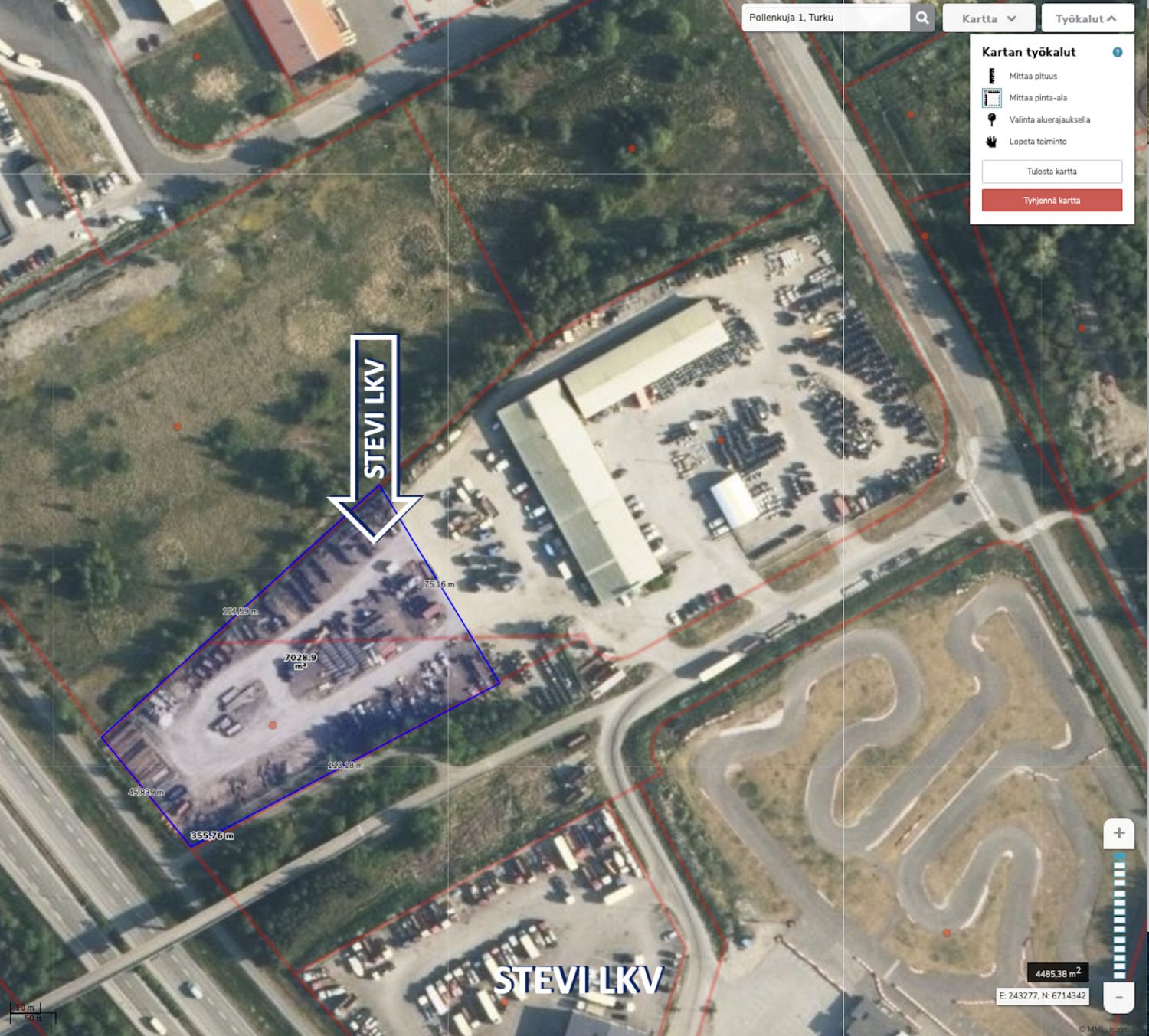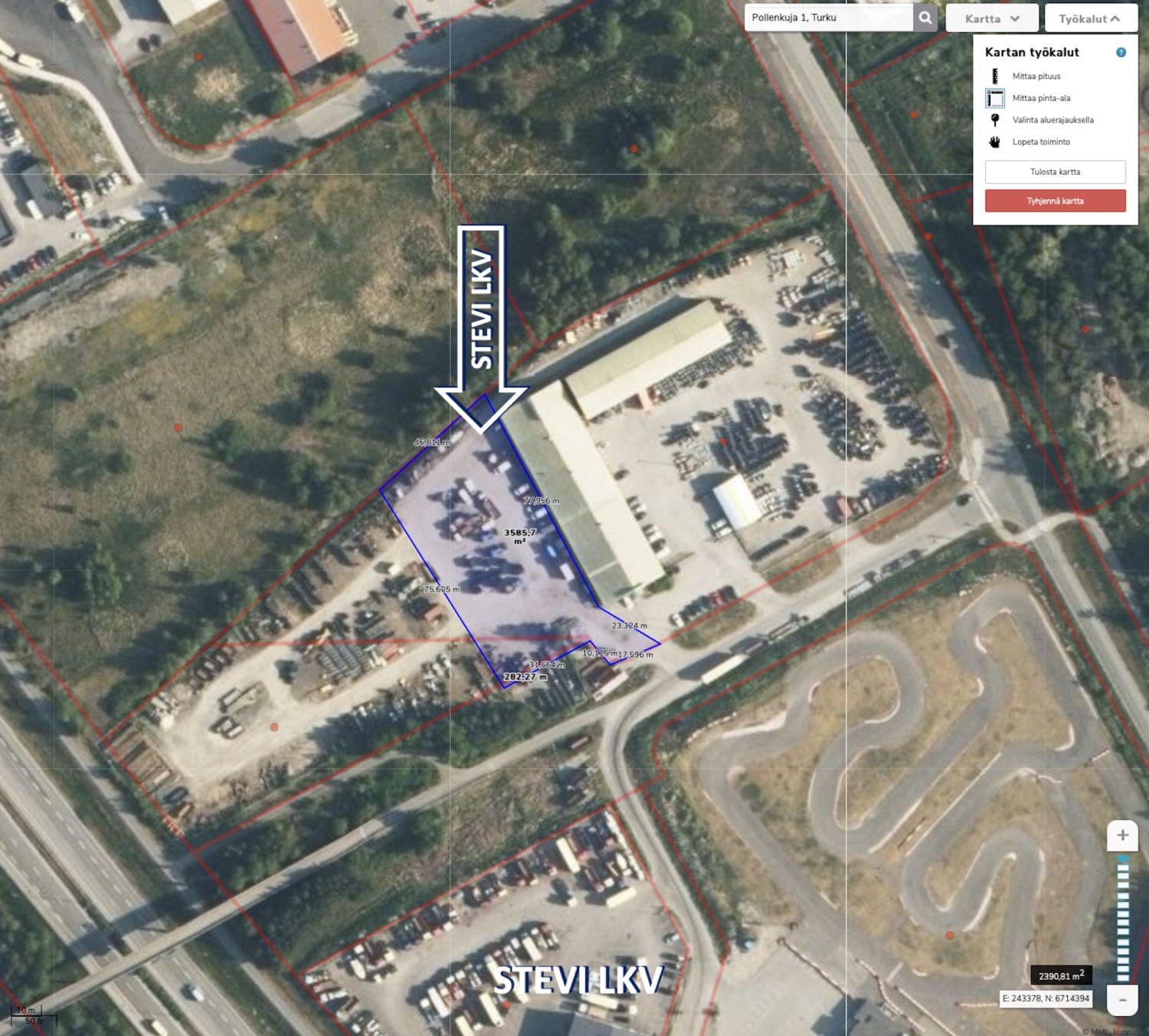 Asfaltoitu ja aidattu piha-alue 3500m2 (n. 0,7€/m2)